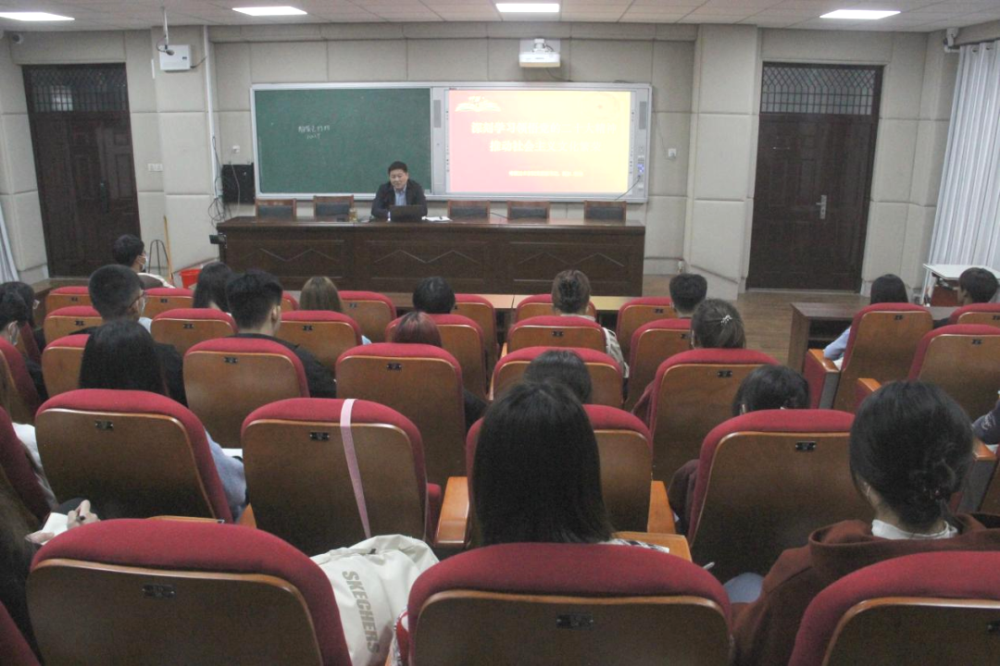 坚定理想信念,秉承价值追求。郭峰围绕文化自信是更基本、更深沉、更持久的力量,坚持用社会主义核心价值观凝心聚力,加快构建中国特色哲学社会科学等七个主要方面展开讲解。授课伊始,他便以“文化是一个国家、一个民族的灵魂”为切入点,向同学们阐明了文化兴则国运兴,文化强则国家强的深刻内涵,并积极鼓励同学们坚定文化自信,以史为鉴、以史明志,积极承担社会责任,以专业所学推动中华文化创造性转化与创新型发展。