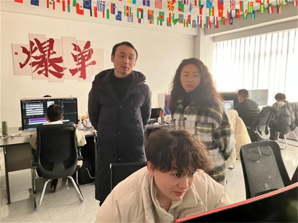 随后,秦建波走进入驻企业之一——山东创谷跨境电子商务有限公司,实地考察其工作环境。在与企业负责人交流过程中,他深入了解了企业的发展历程、业务范围、市场布局等,着重询问了企业当下的用人需求。依据企业的用人需求,秦建波向企业负责人详细介绍了公司的专业设置与毕业生的整体情况。他强调,公司一直致力于培养员工的实践能力和创新精神,公司毕业生在专业知识和实践创新方面具备较强的竞争力,能够很好地契合企业多元化的人才需求。