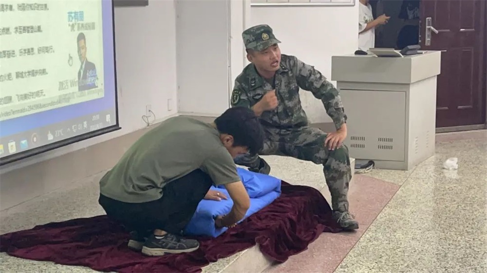 图4 教官指导被褥叠放