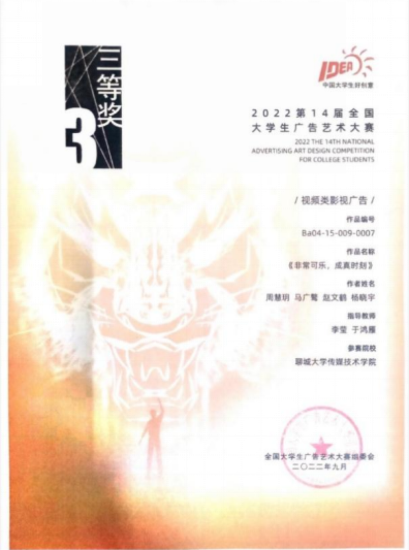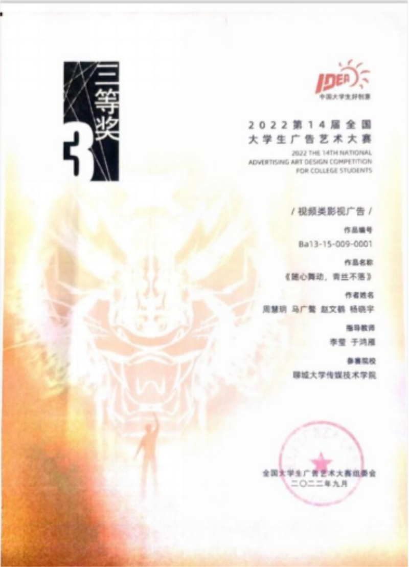 图2 2022第14届全国老员工广告艺术大赛国赛三等奖