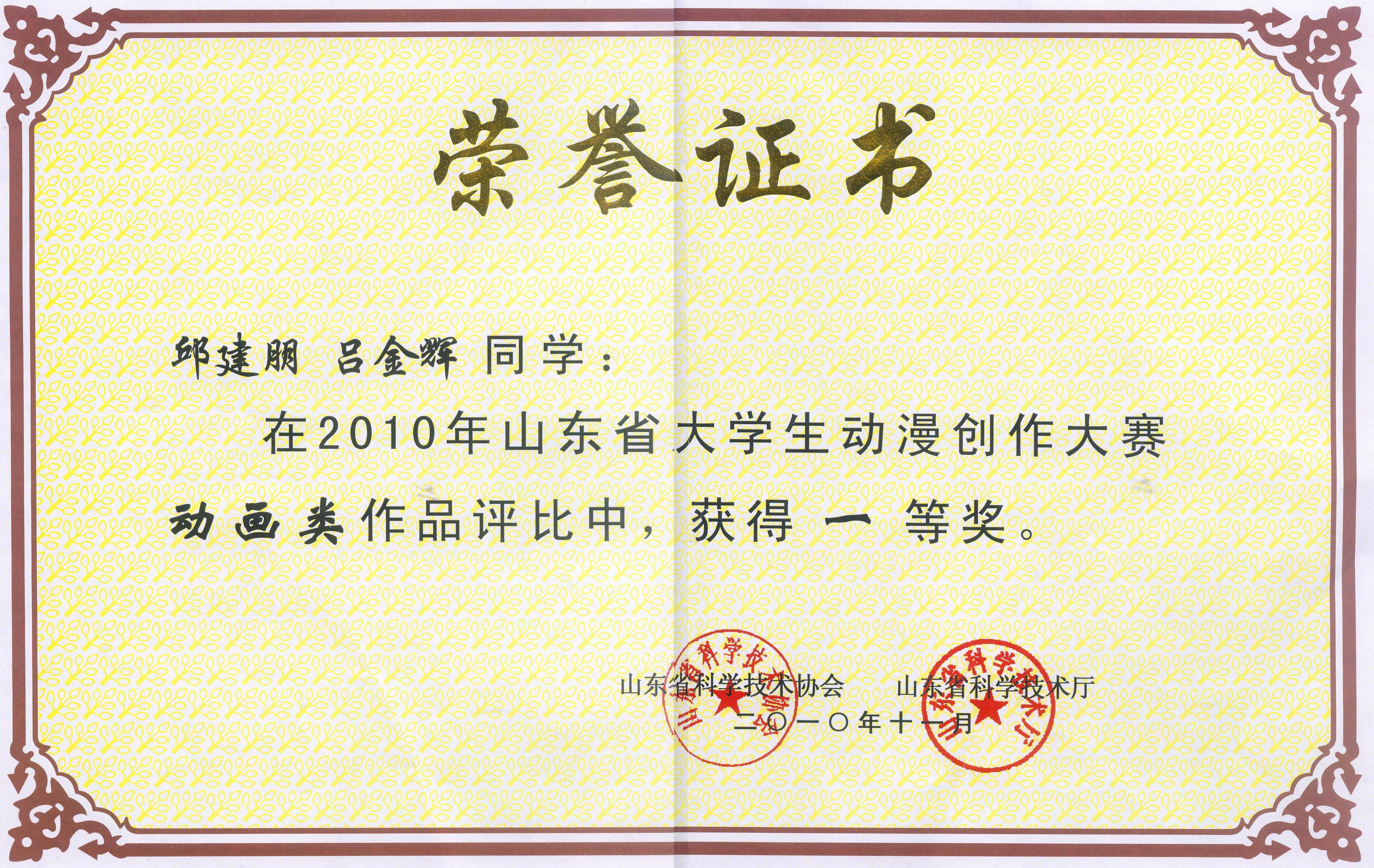 邱建朋、吕金辉,2010年山东省老员工动漫创作大赛动画类作品一等奖