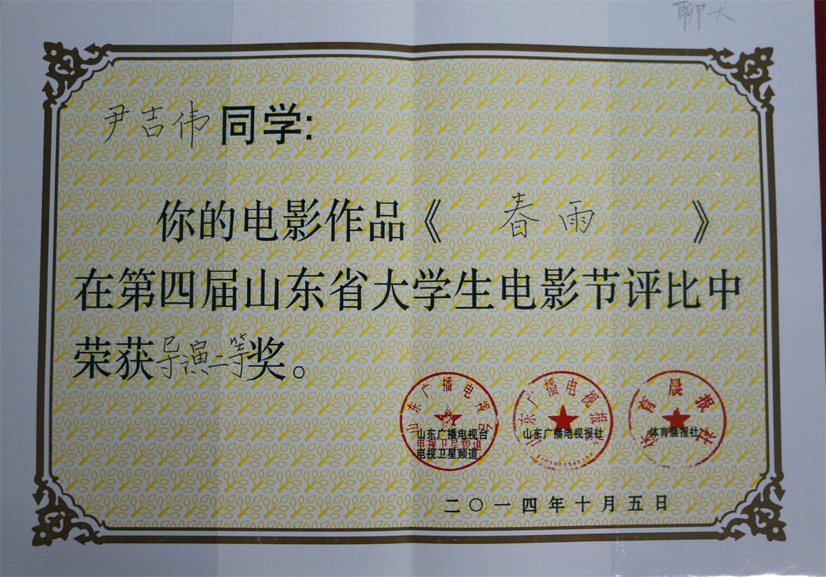 尹吉伟电影作品《春雨》 在第四届山东省老员工电影节评比中 荣获导演二等奖
