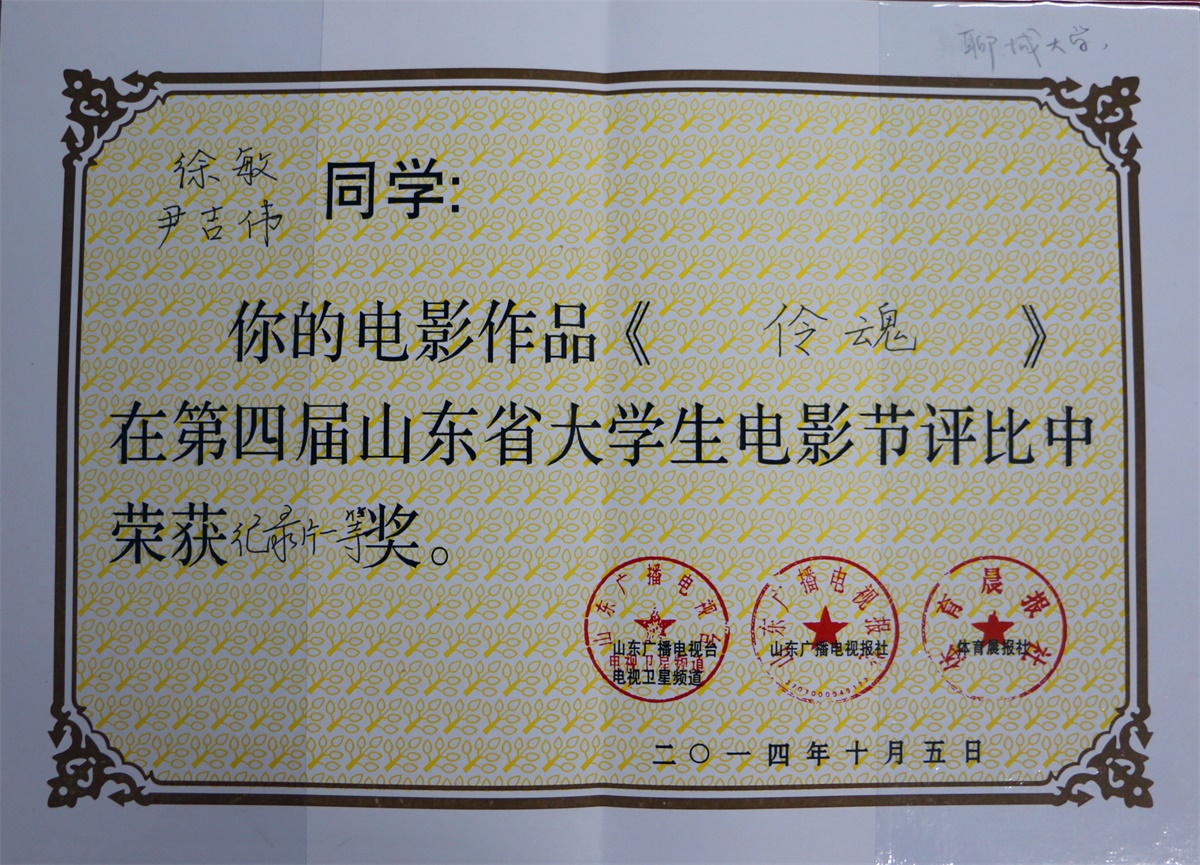 徐敏 、尹吉伟电影作品 《 伶魂》在第四届山东省老员工电影节评比中荣获纪录片一等奖