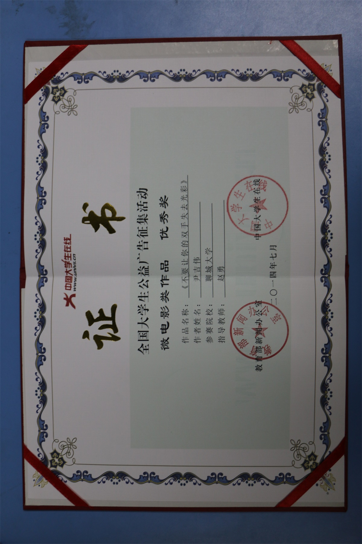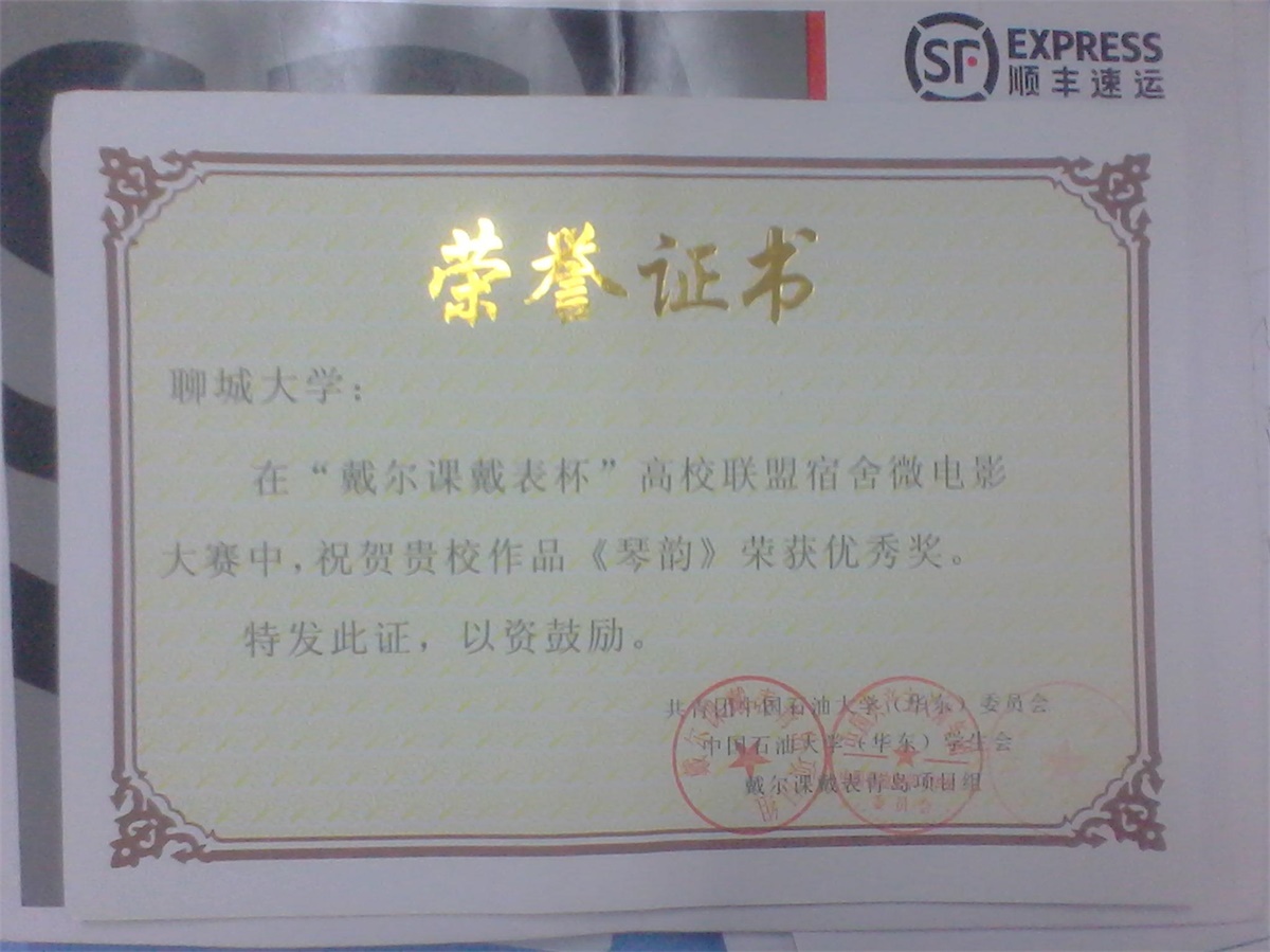 《琴韵》在“戴尔课戴表杯”高校联盟宿舍微电影大赛中荣获优秀奖