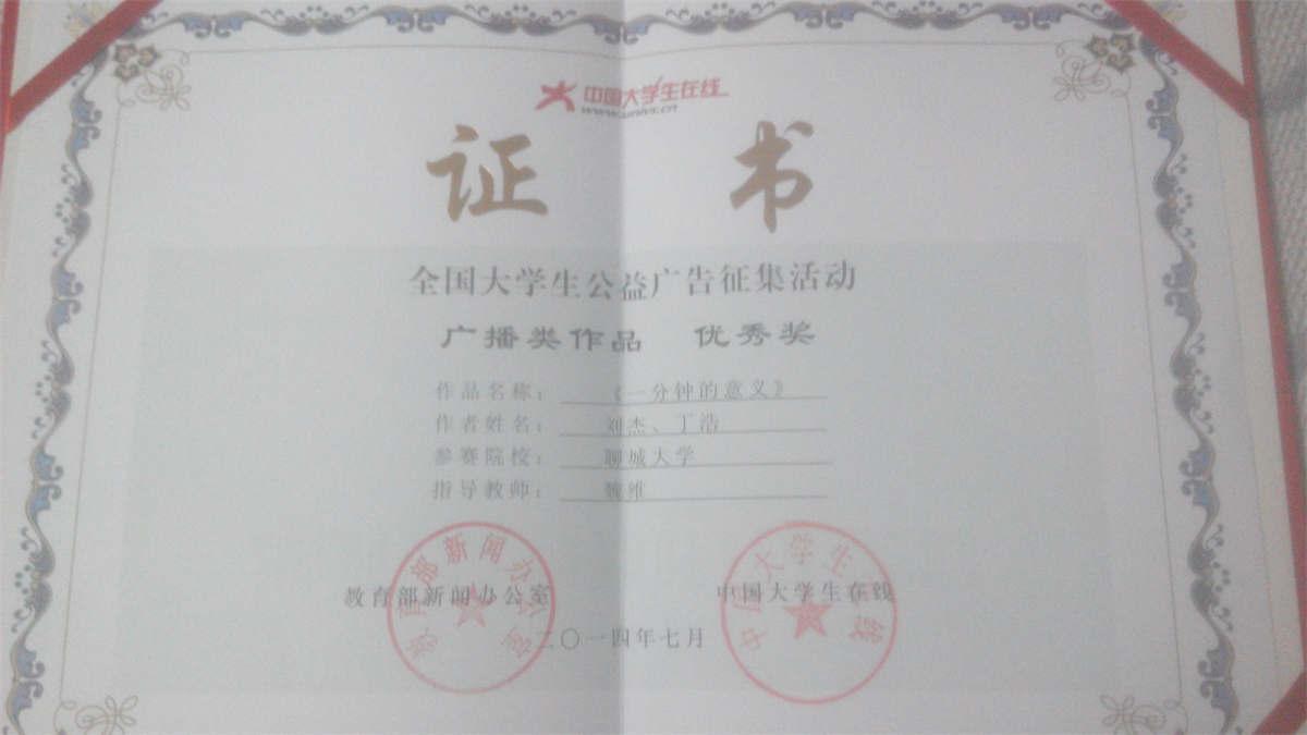 刘杰、丁浩《一分钟的意义》获全国老员工公益广告征集活动广播类作品 优秀奖