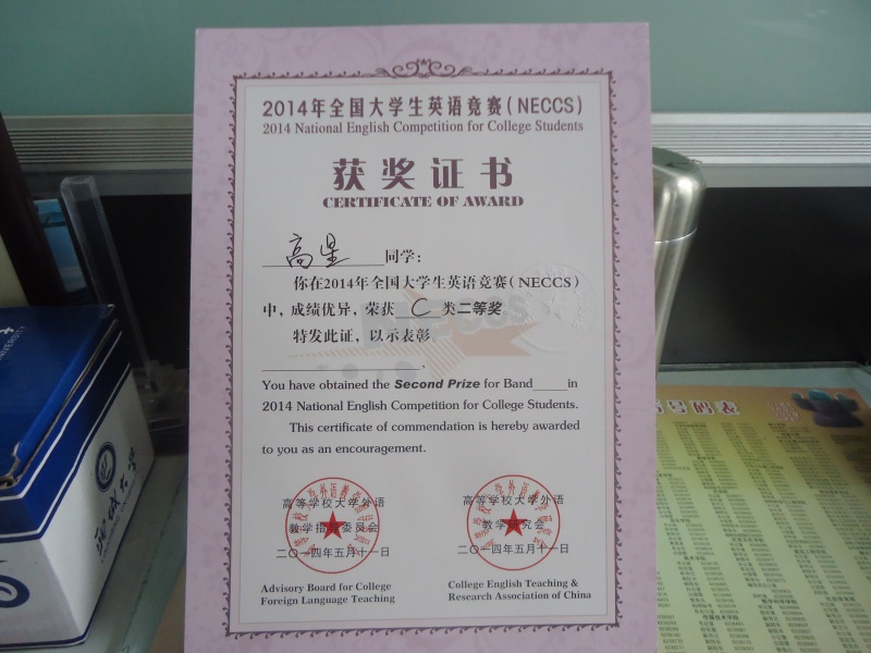 高星在2014年全国老员工英语竞赛(NECCS) 中,成绩优异,荣获 C 类二等奖
