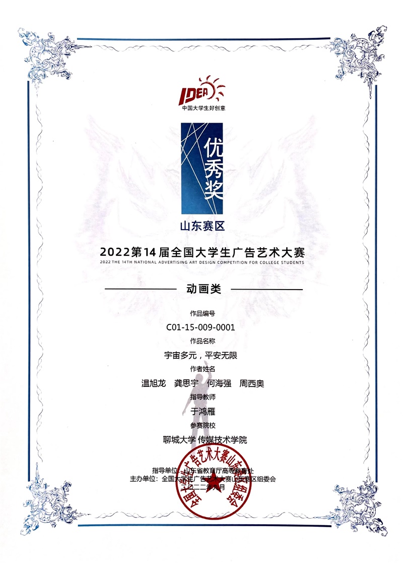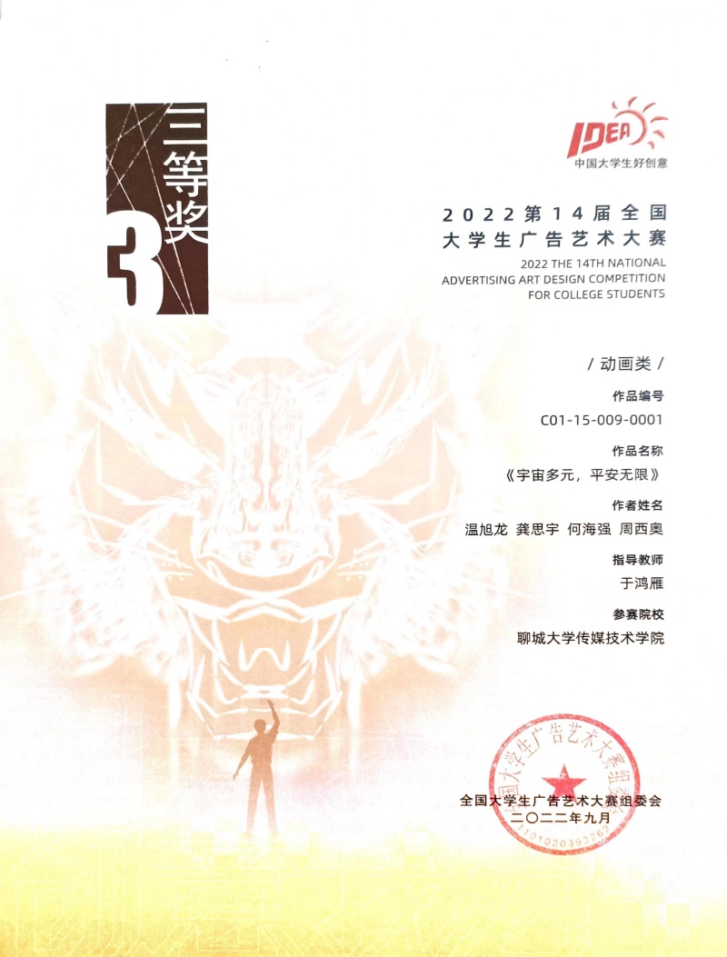 温旭龙、龚思宇、何海强、周西奥的《宇宙多元,平安无限》获得优秀奖