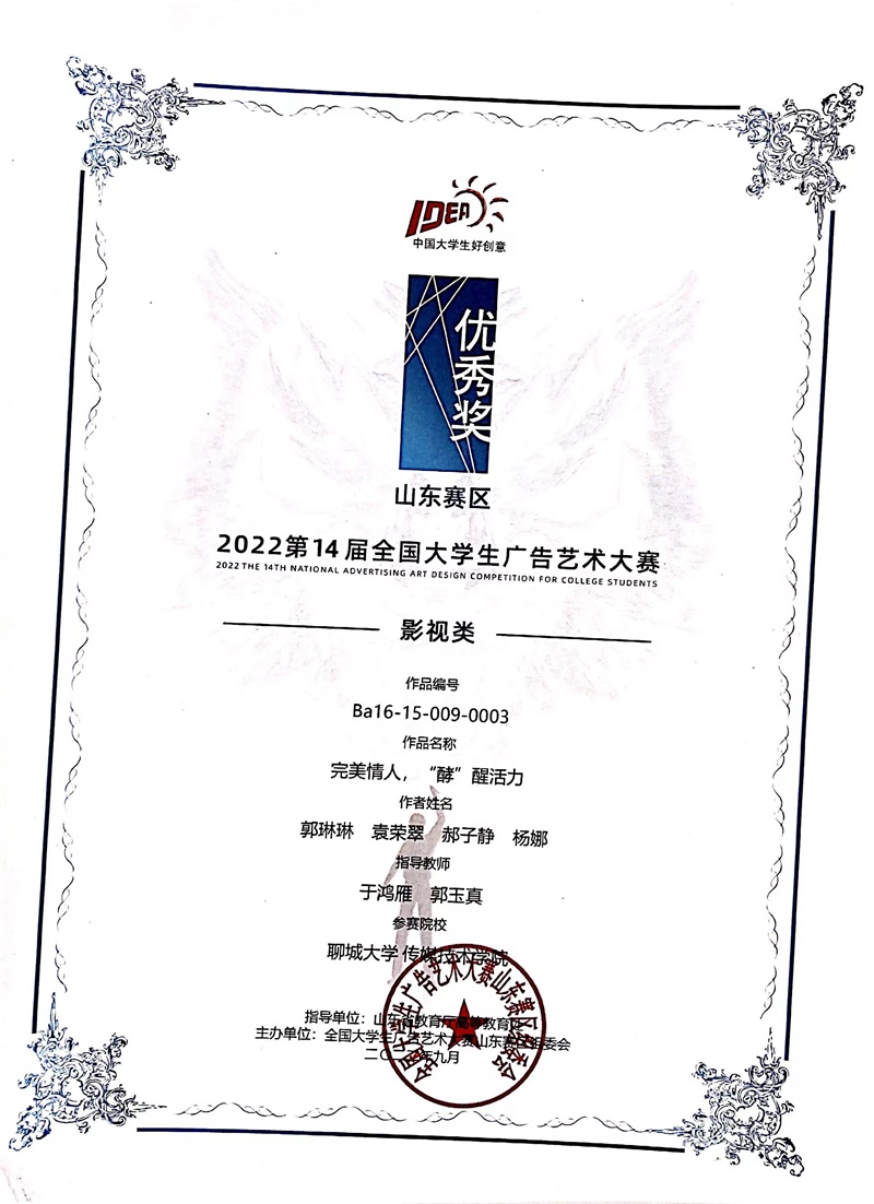 郭琳琳、袁荣翠、郝子静、杨娜的《完美情人,“酵”醒活力》获得优秀奖