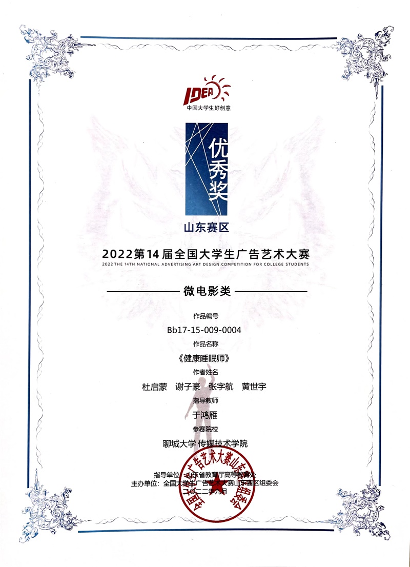 杜启蒙、谢子豪、张宇航、黄世宇的《健康睡眠师》获得优秀奖