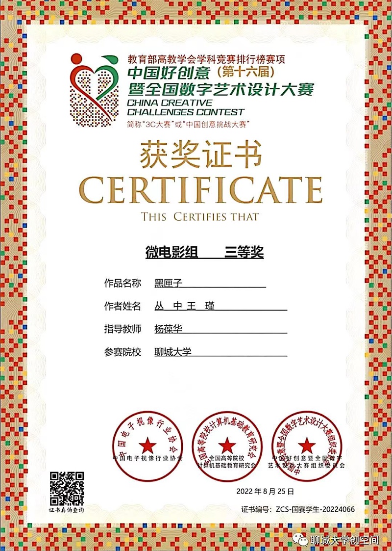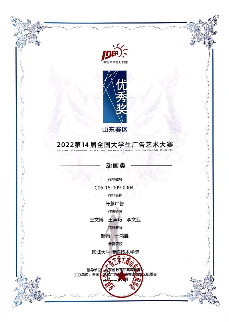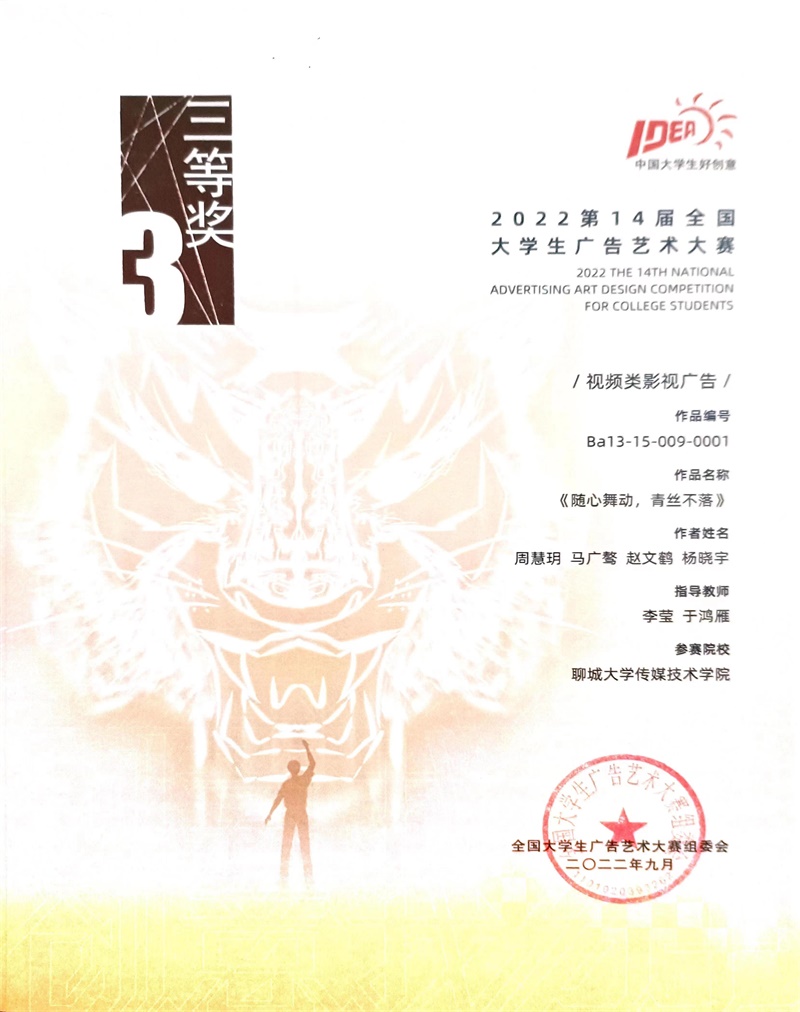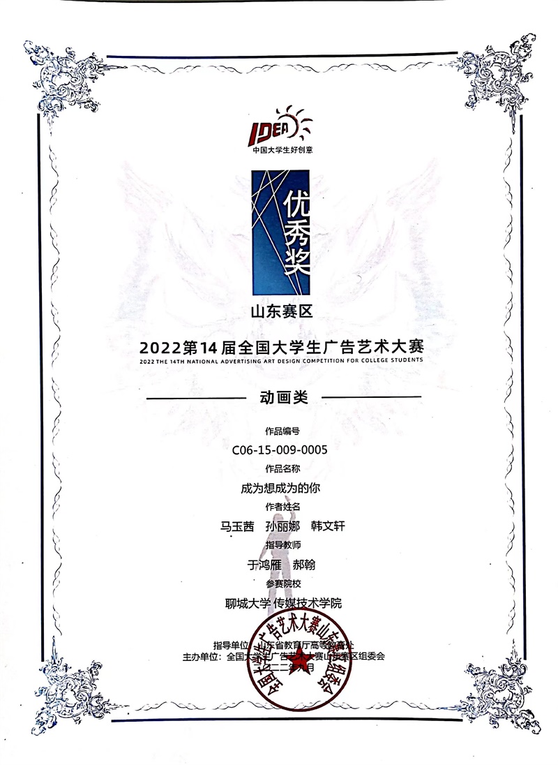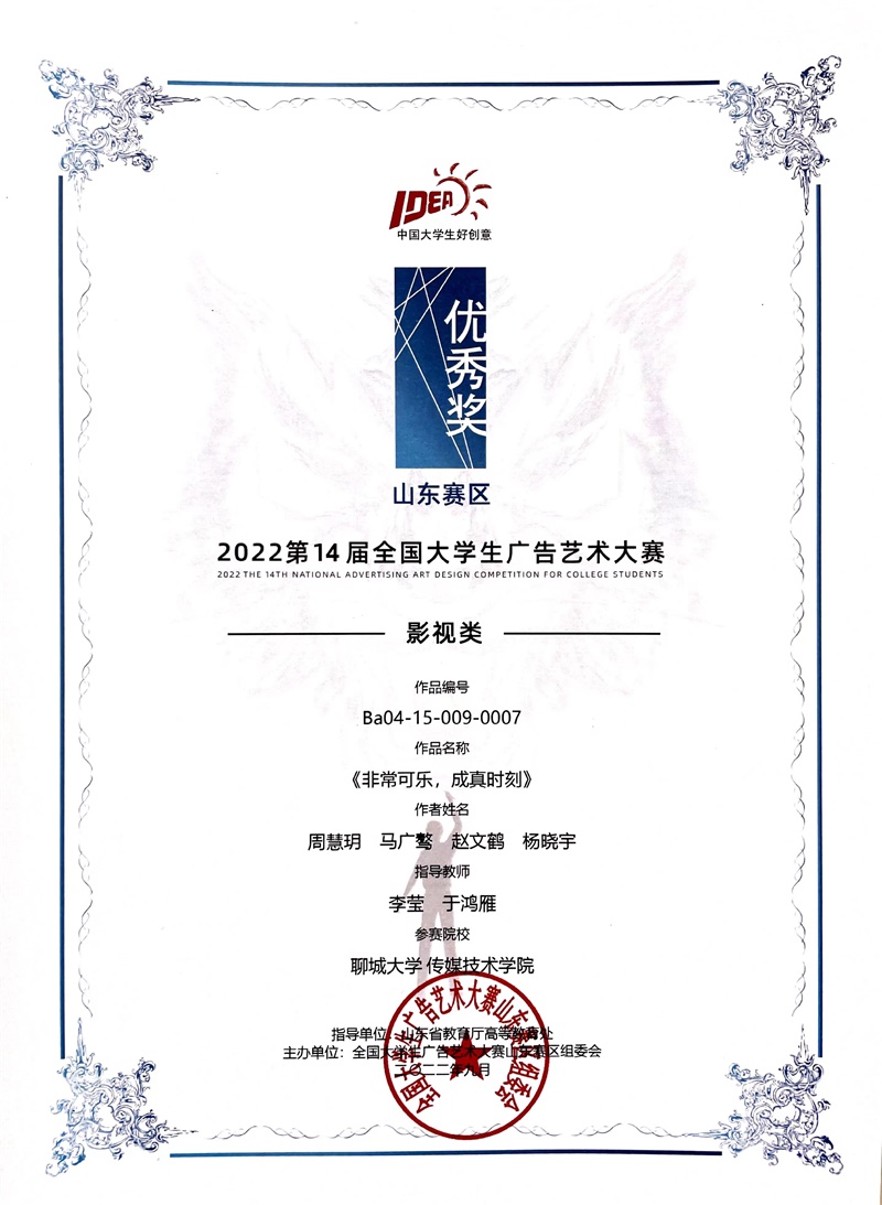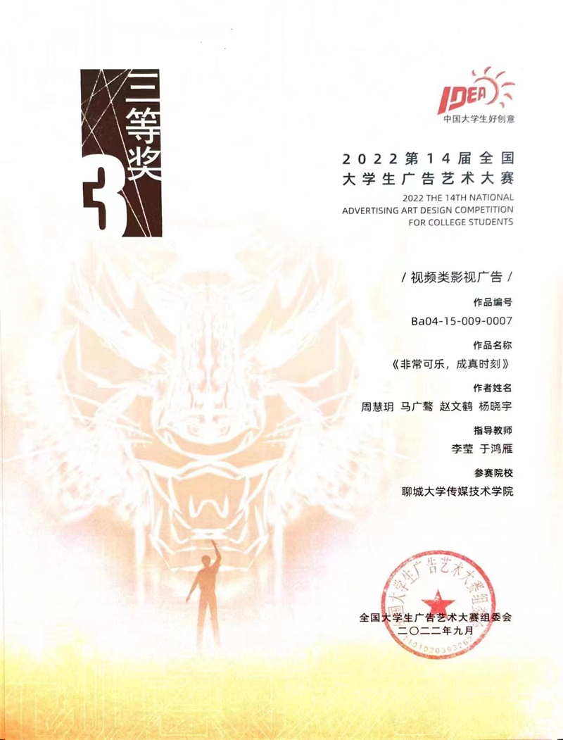 周慧玥、马广骜、赵文鹤、杨晓宇的《非常可乐,成真时刻》获得优秀奖