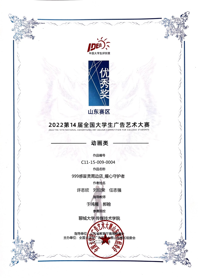 许志欣、刘欣荣、任志强的《999感冒灵周边店_暖心守护者》获得优秀奖