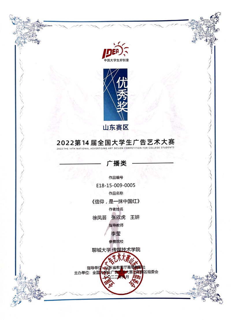徐凤芸、张欣虎、王妍的《信仰,是一抹中国红》获得优秀奖