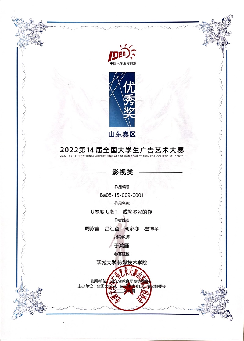 周泳言、吕红蓓、刘家亦、崔坤苹的《U态度 U潮T——成就多彩的你》获得优秀奖