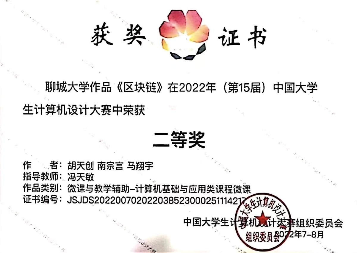 胡天创、南宗言、马翔宇《微课与教学辅助-计算机基础与应用类课程微课》获得二等奖