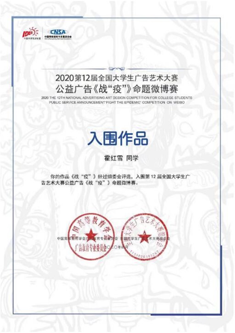 《指尖上的温暖:一名青年志愿者的日记》获得2020年”高校影视作品交流展映“活动抗”疫“主题优秀作品
