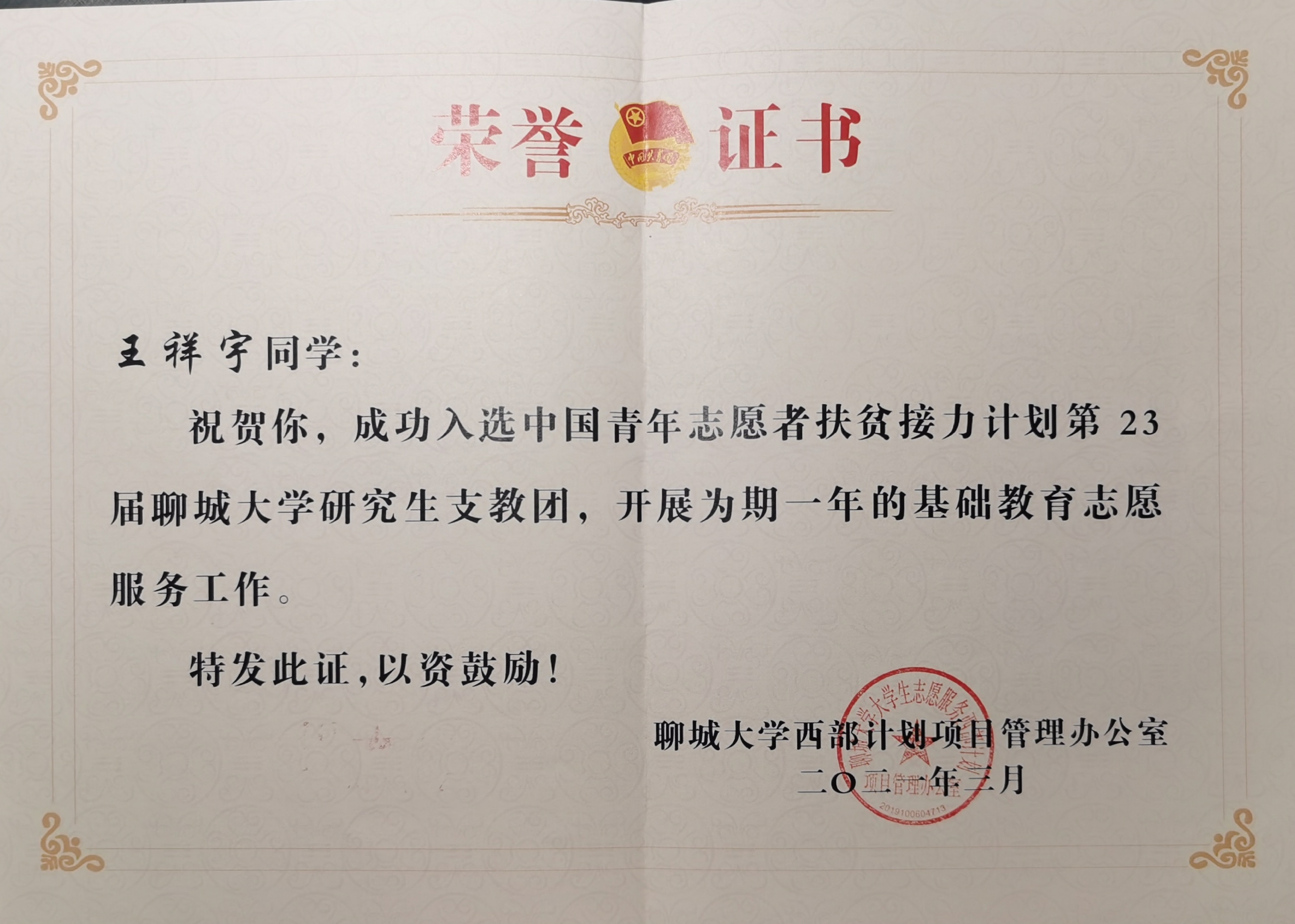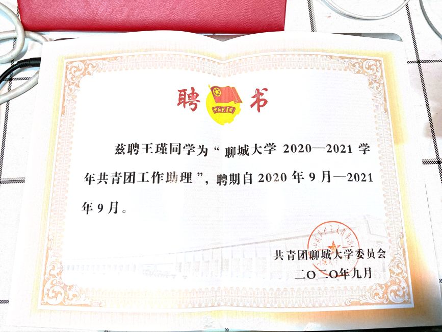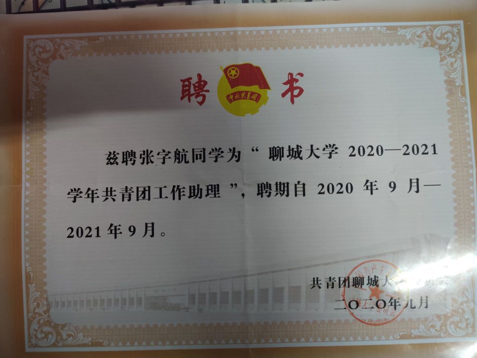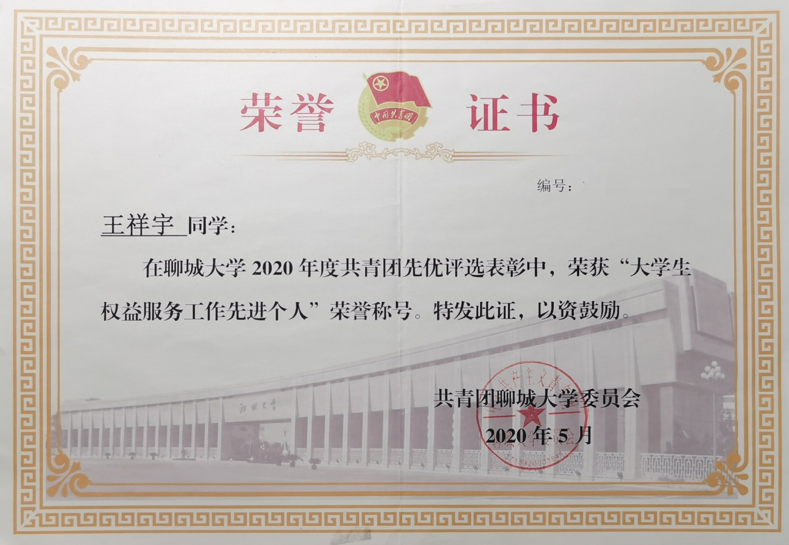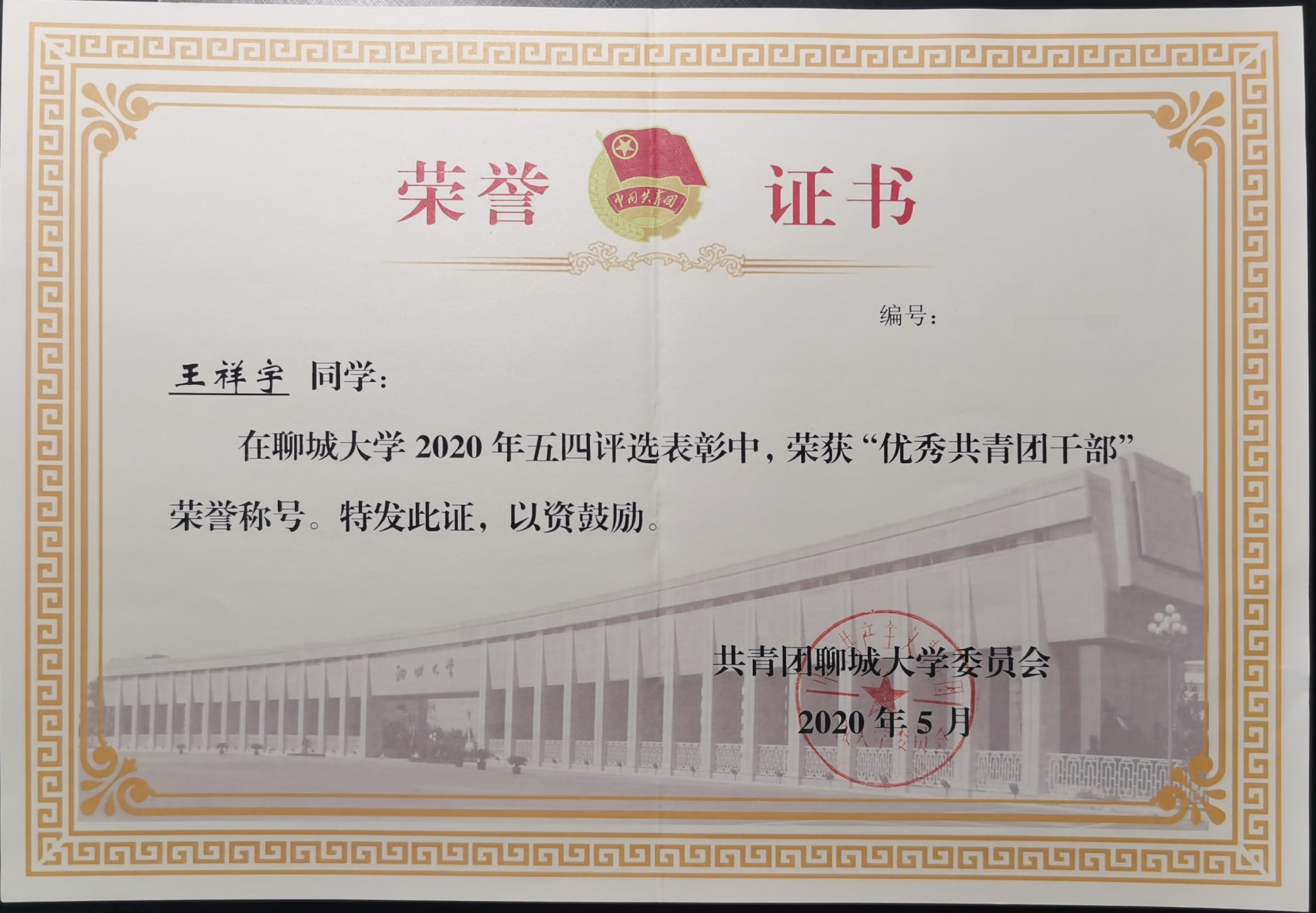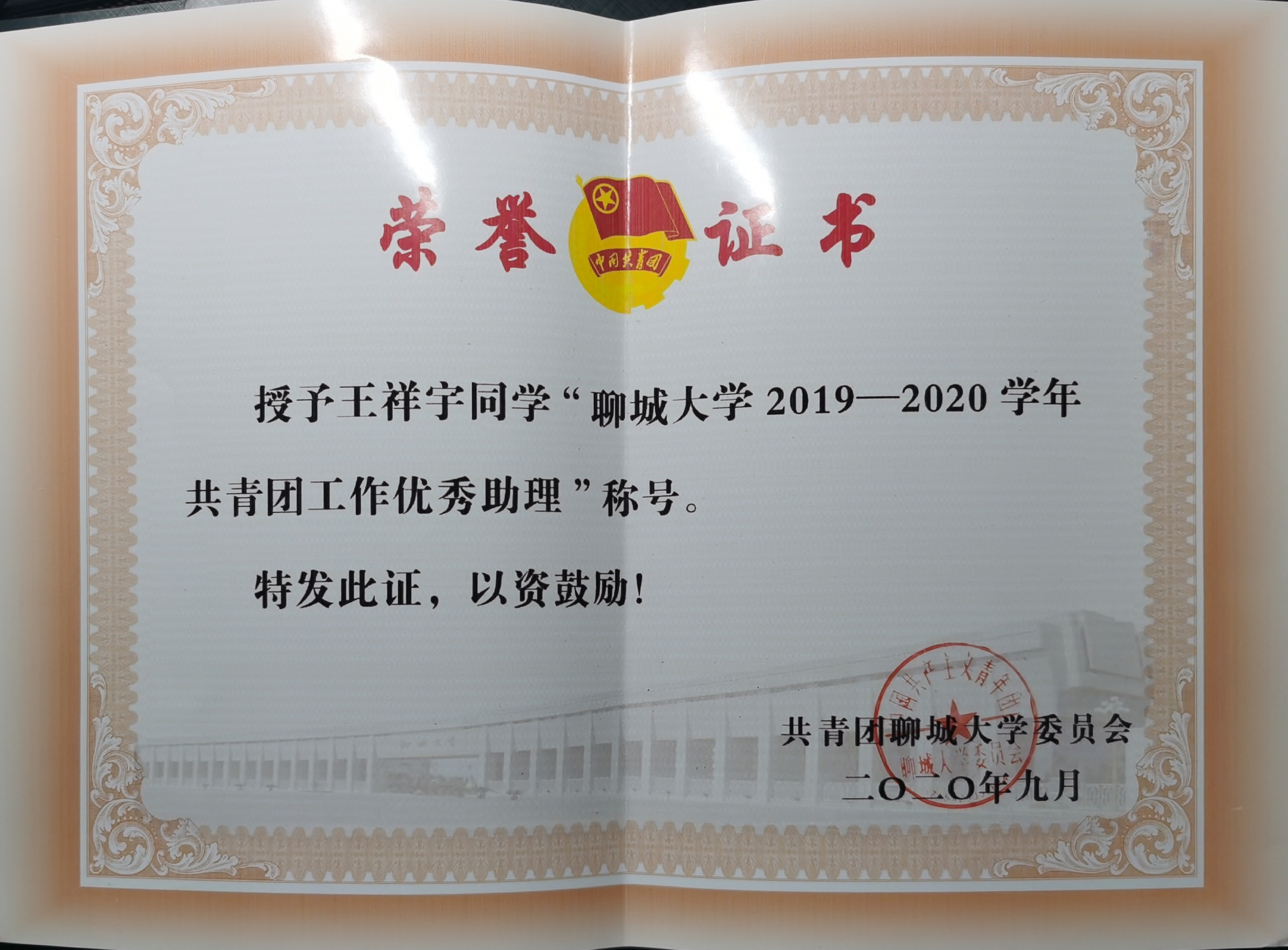 王祥宇,“w662019——2020学年共青团优秀助理”