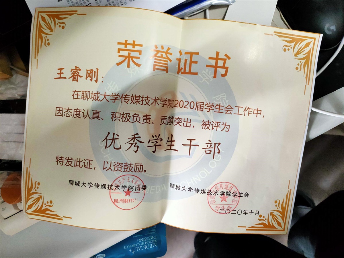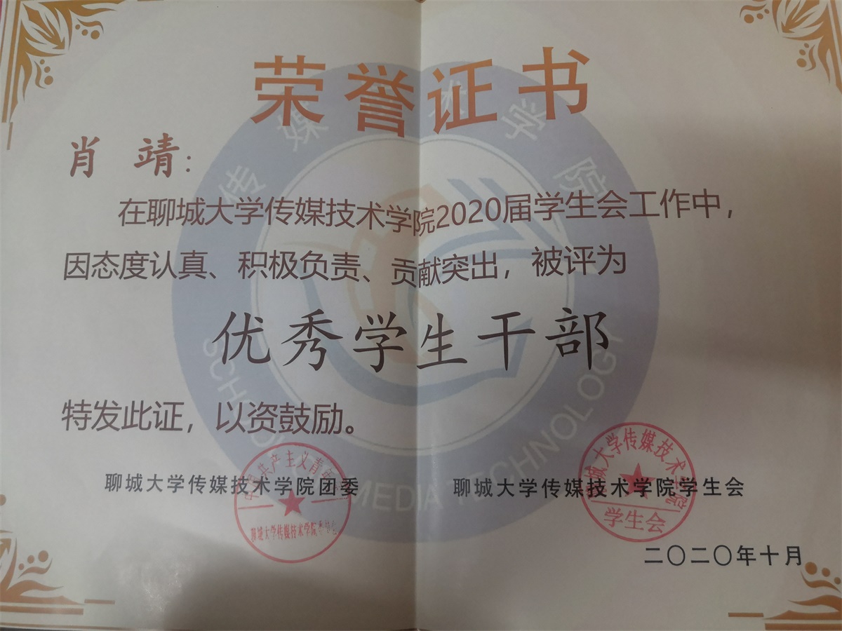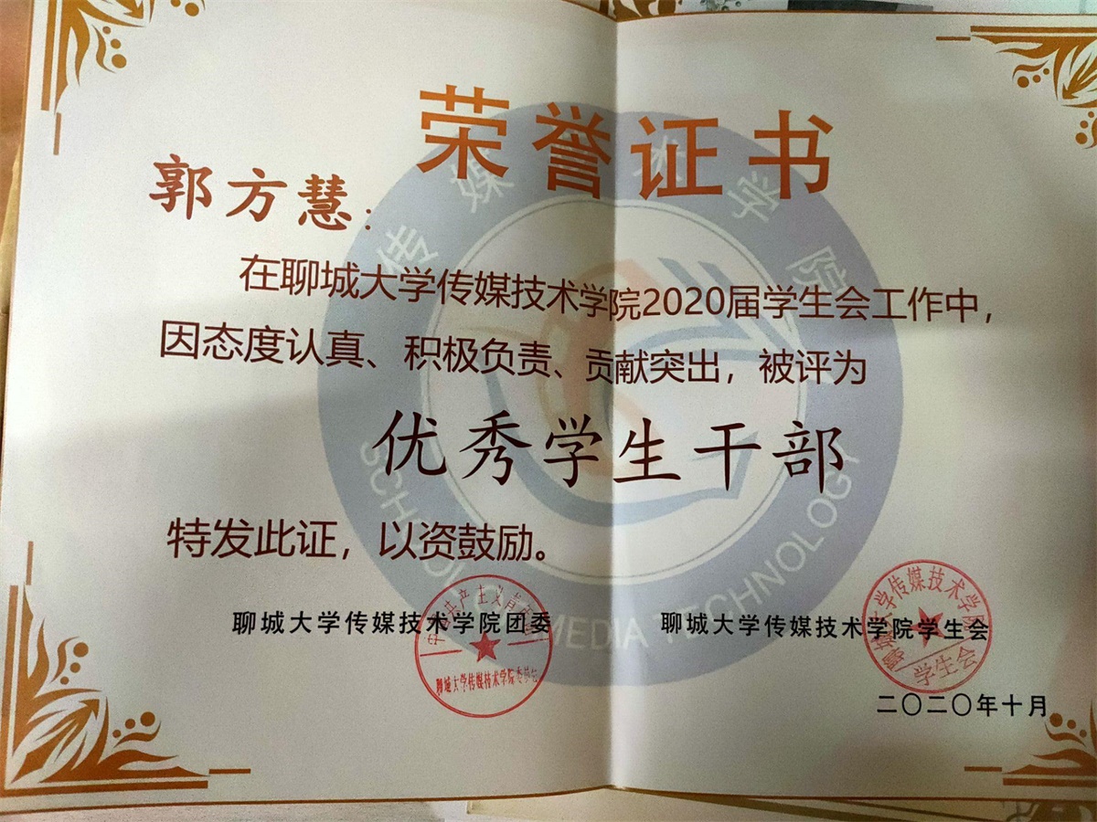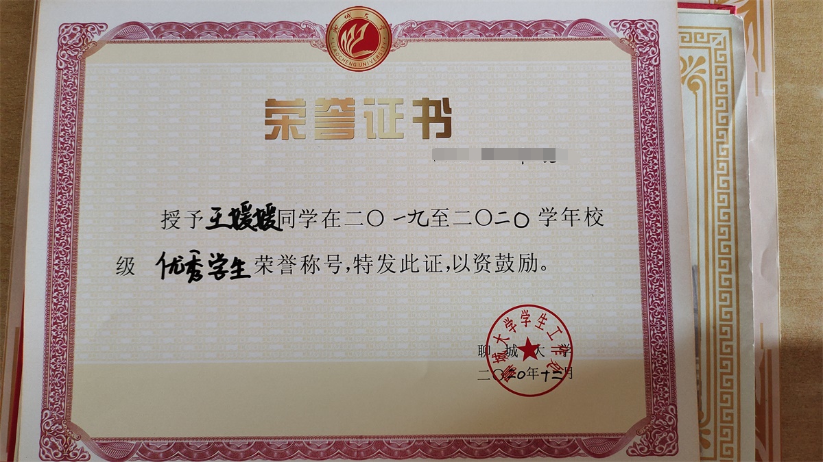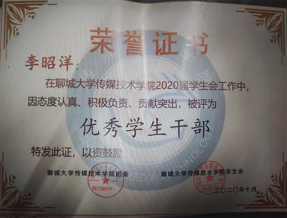 孟令强获得校级“共青团思想引领和宣传教育工作先进个人称号
