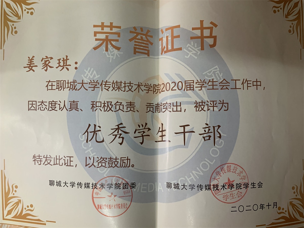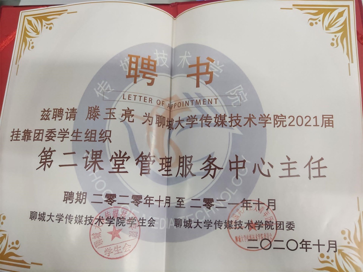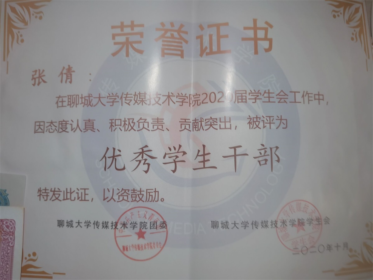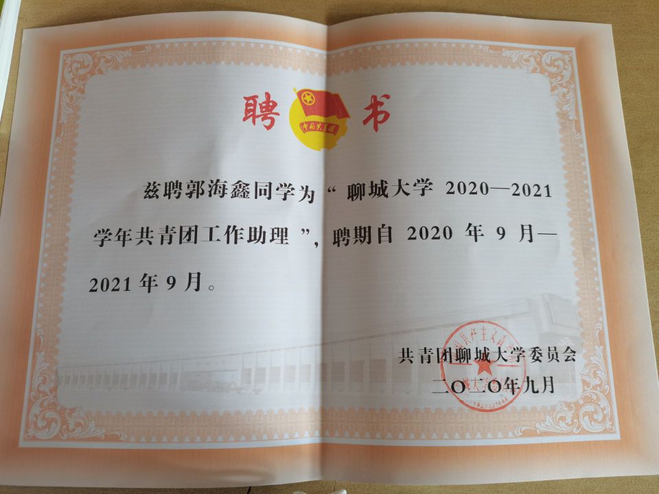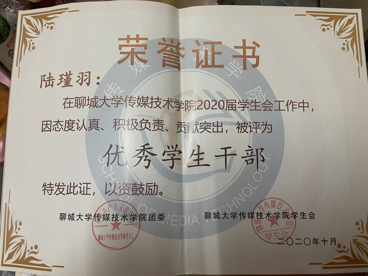 孟令强获得校级“共青团思想引领和宣传教育工作先进个人称号