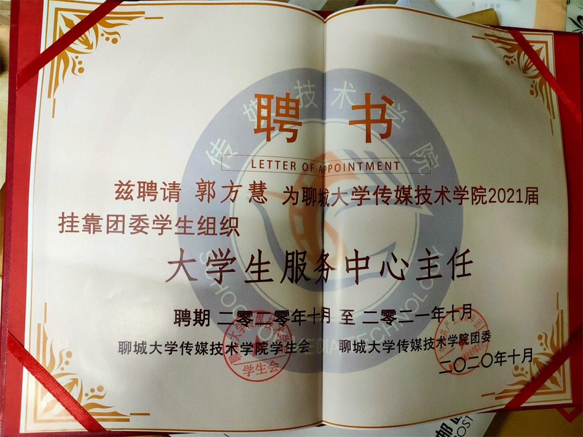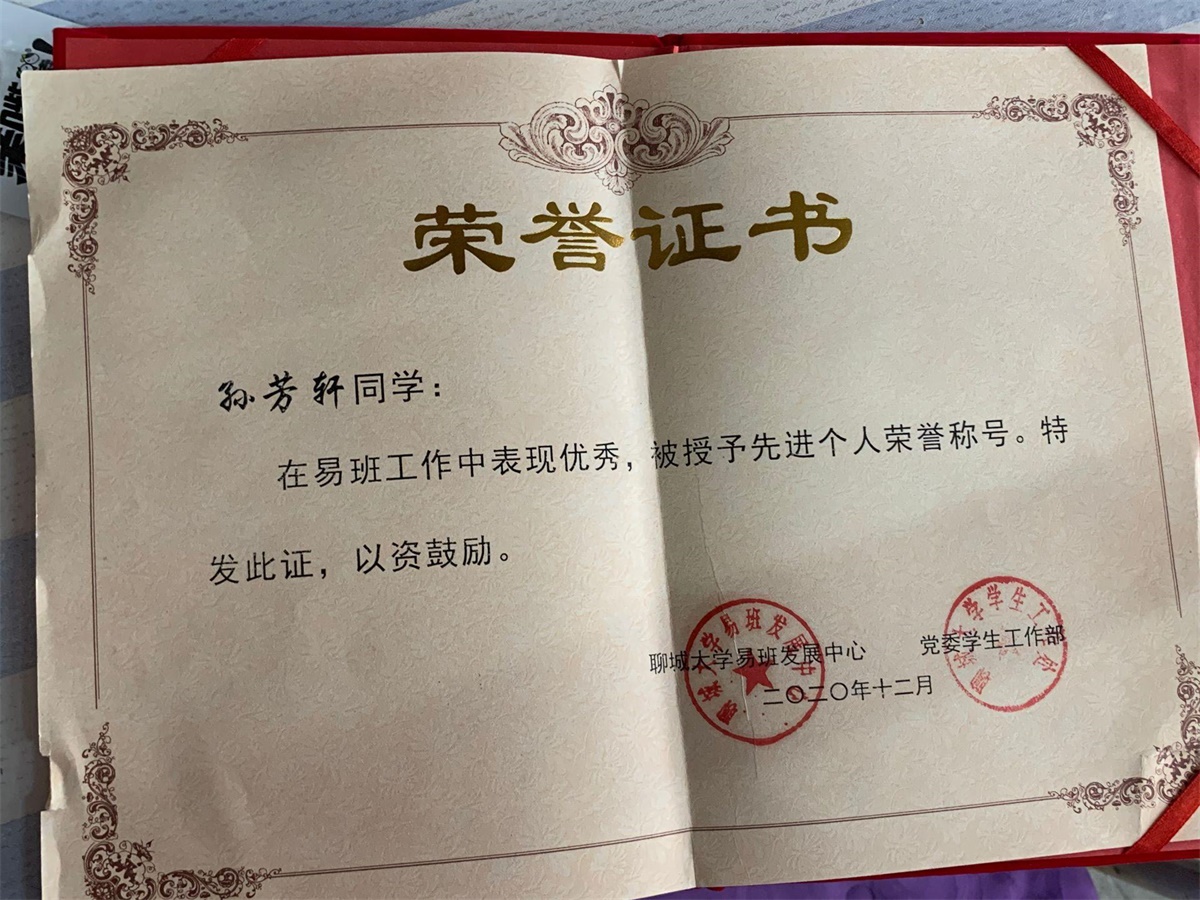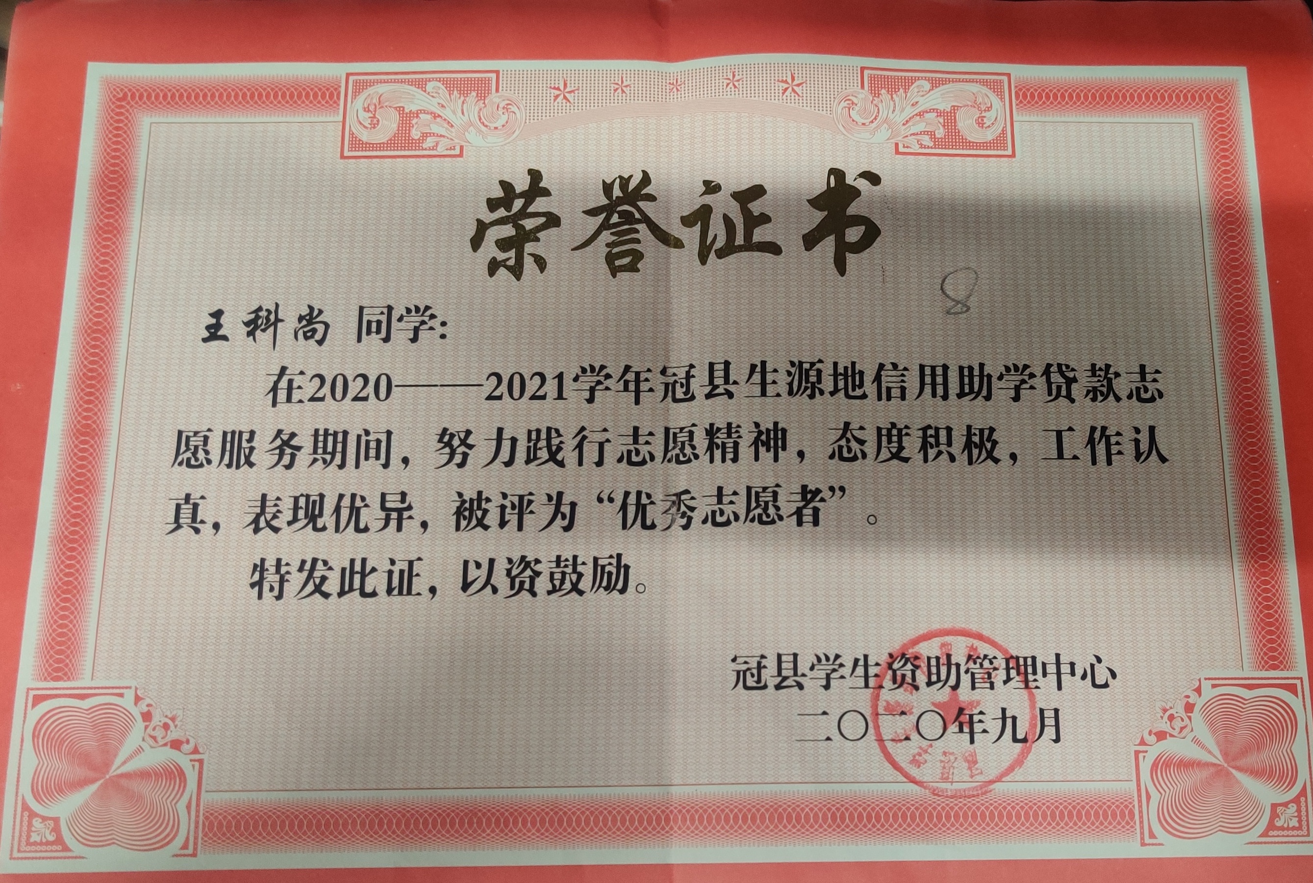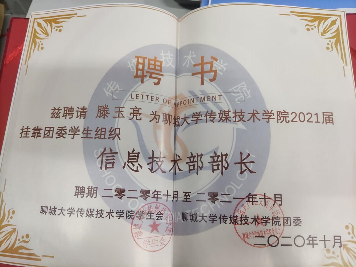 孟令强获得校级“共青团思想引领和宣传教育工作先进个人称号