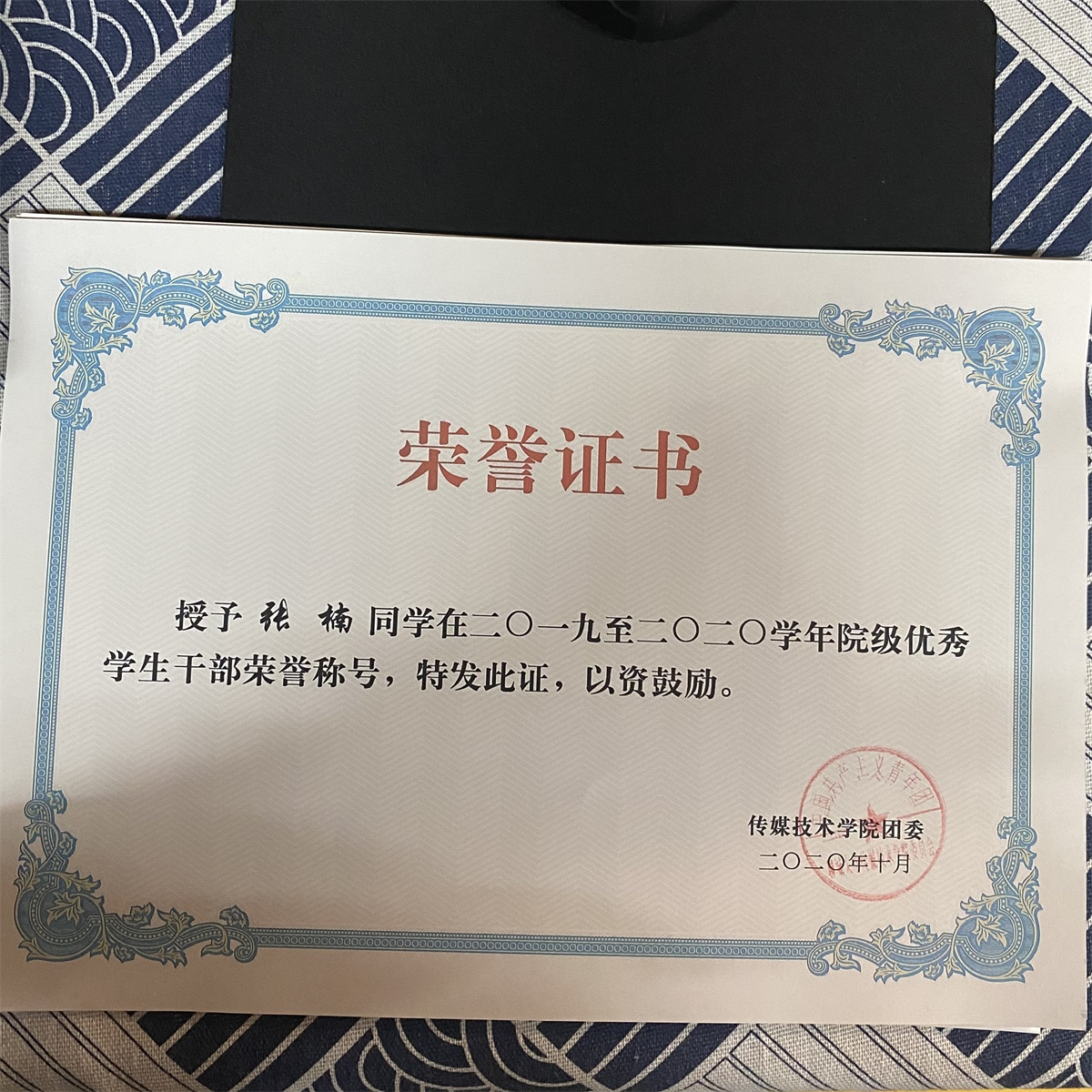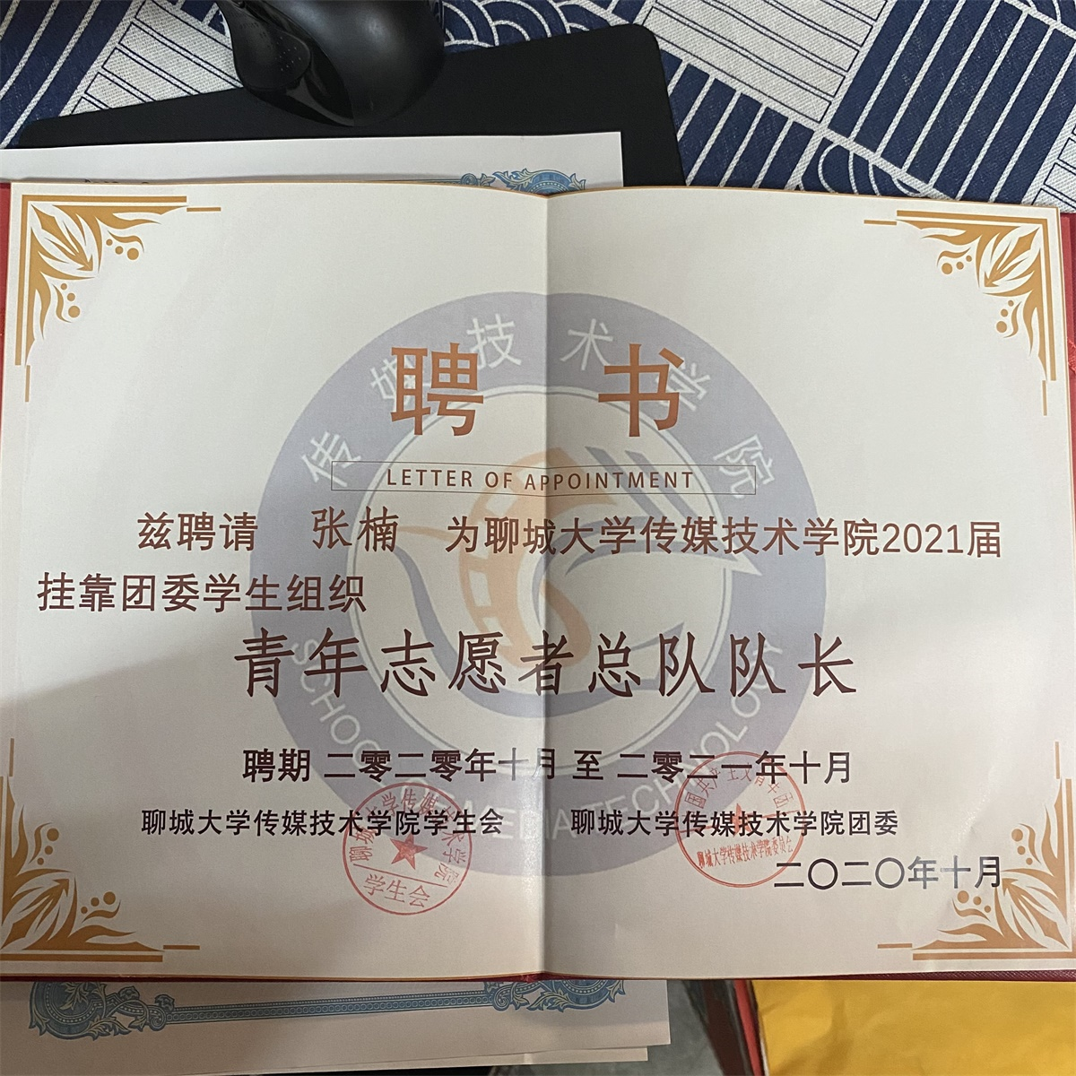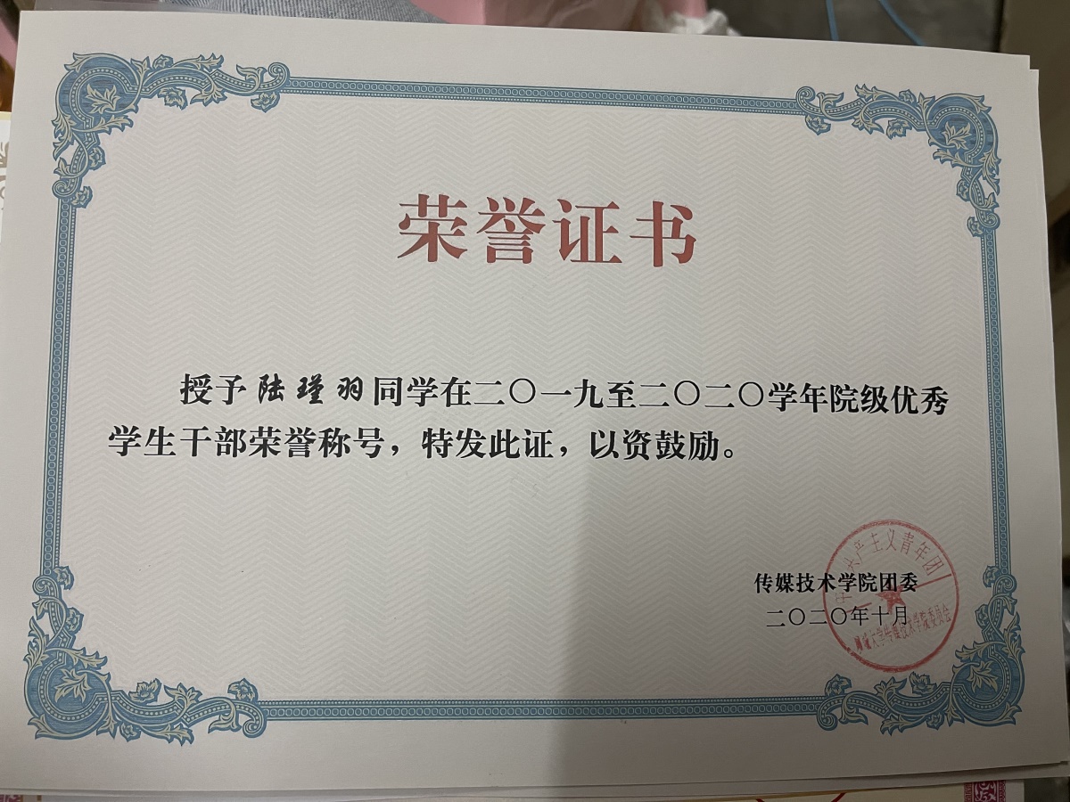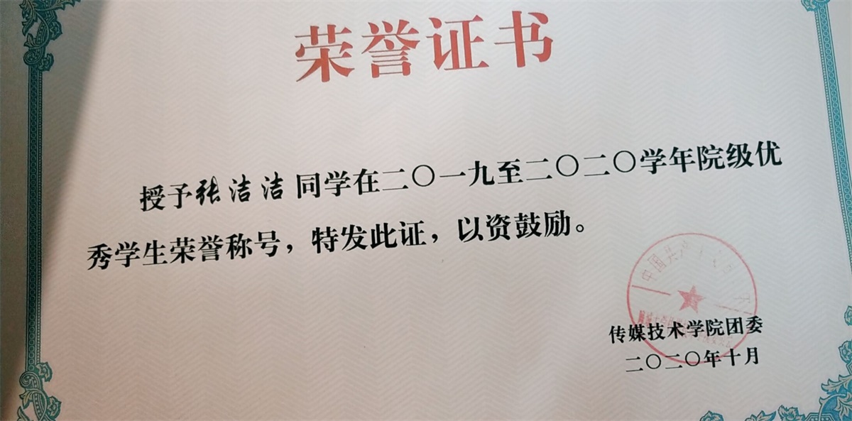 杜龙雪获得2020年度共青团思想引领和宣传教育工作先进个人称号