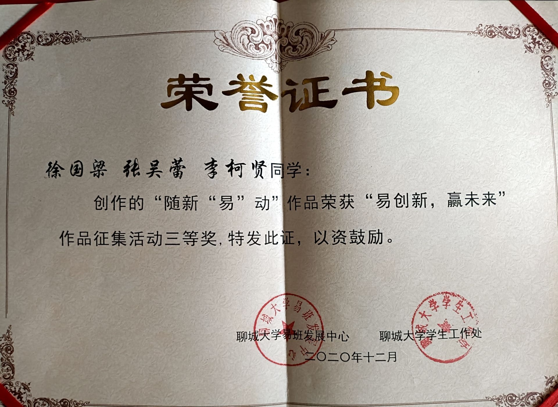 徐国梁 张吴蕾 李柯贤 “易创新,赢未来” 三等奖