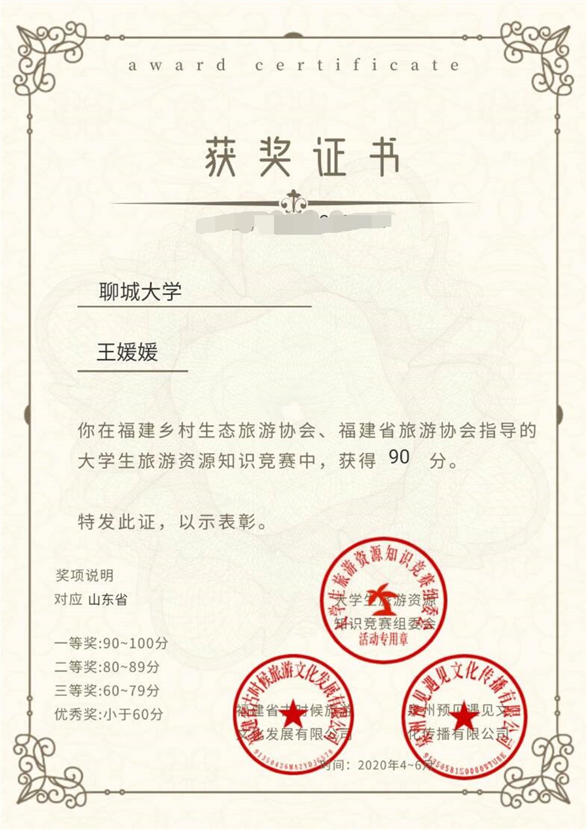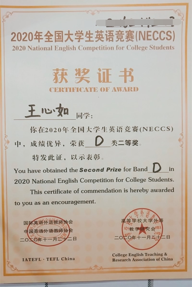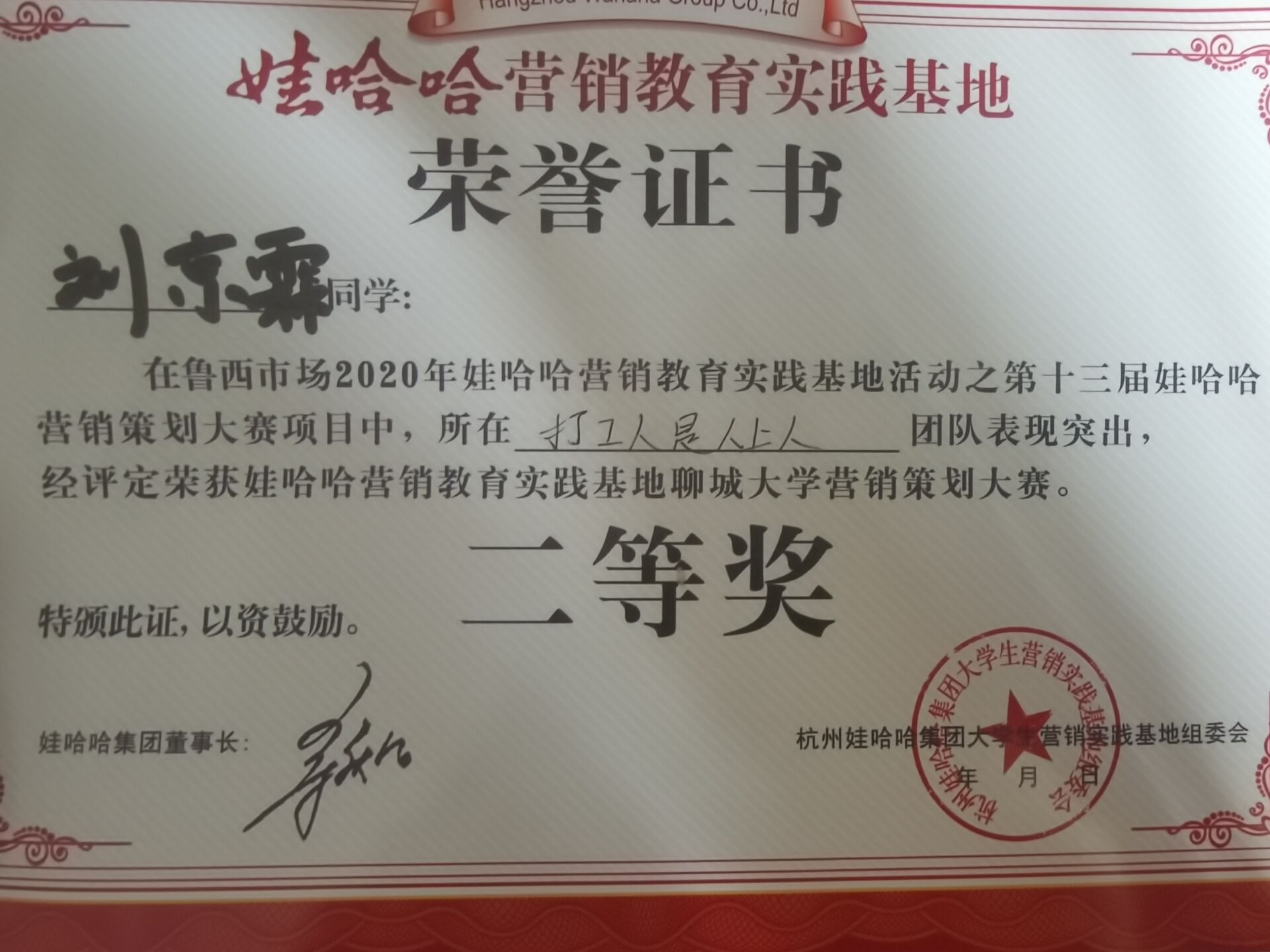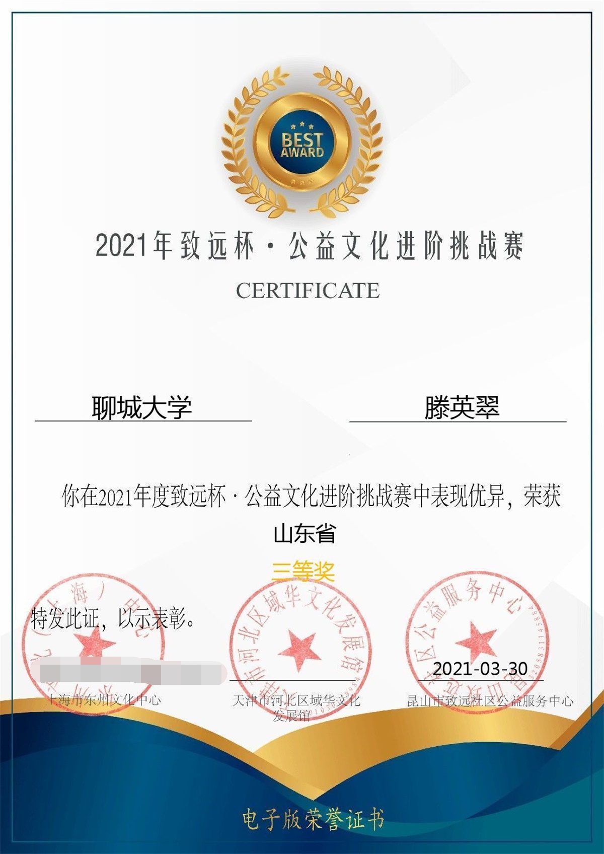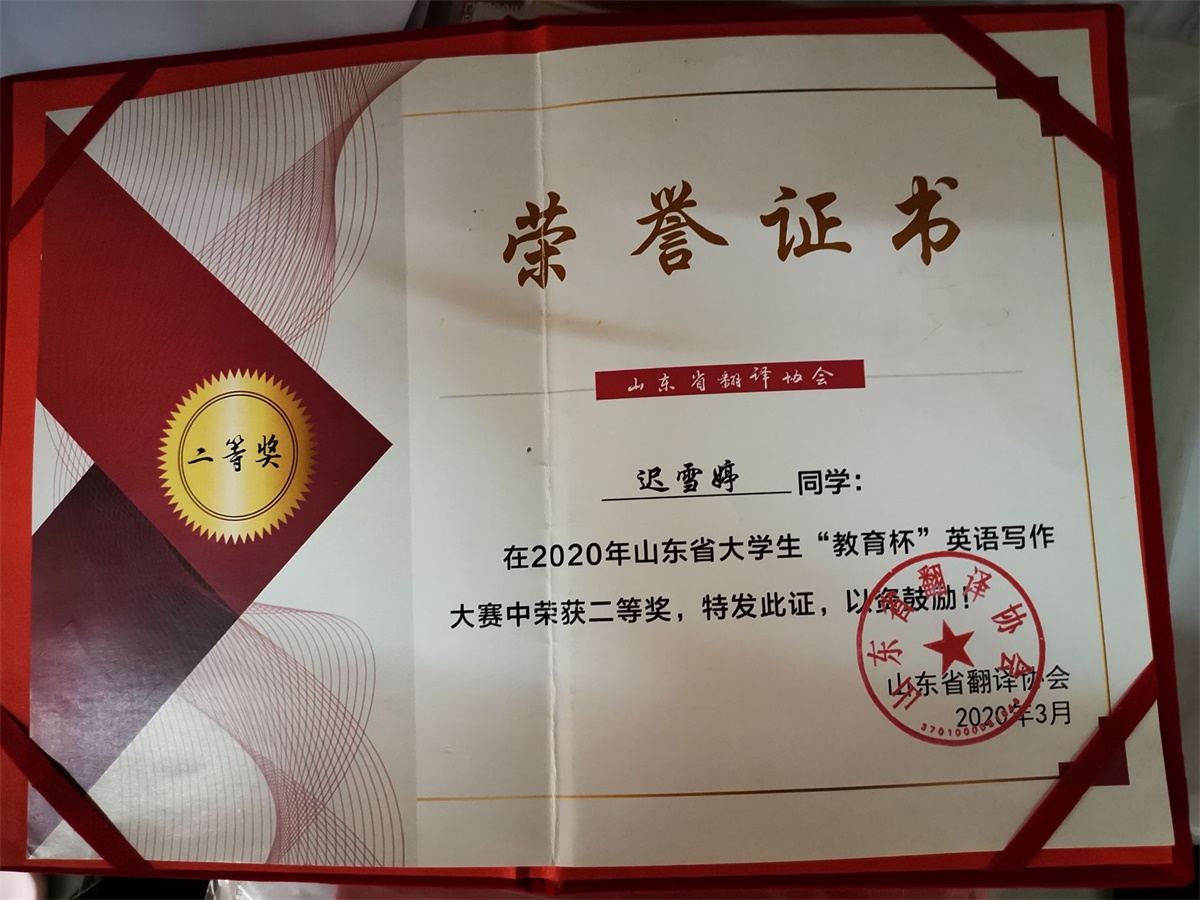迟雪婷获得.j年山东省老员工“教育杯”英语写作大赛获得二等奖pg