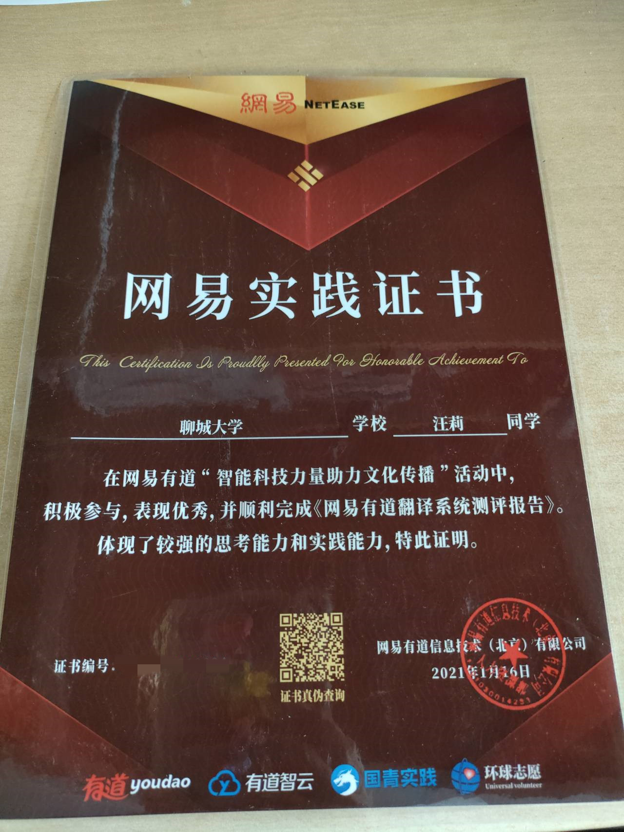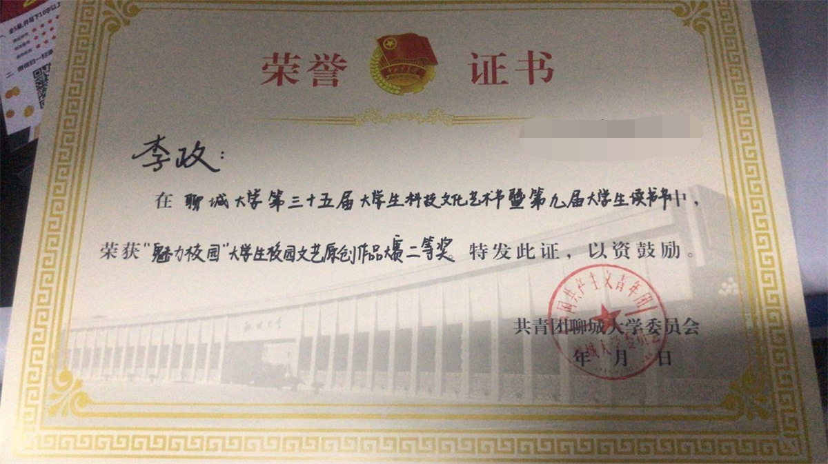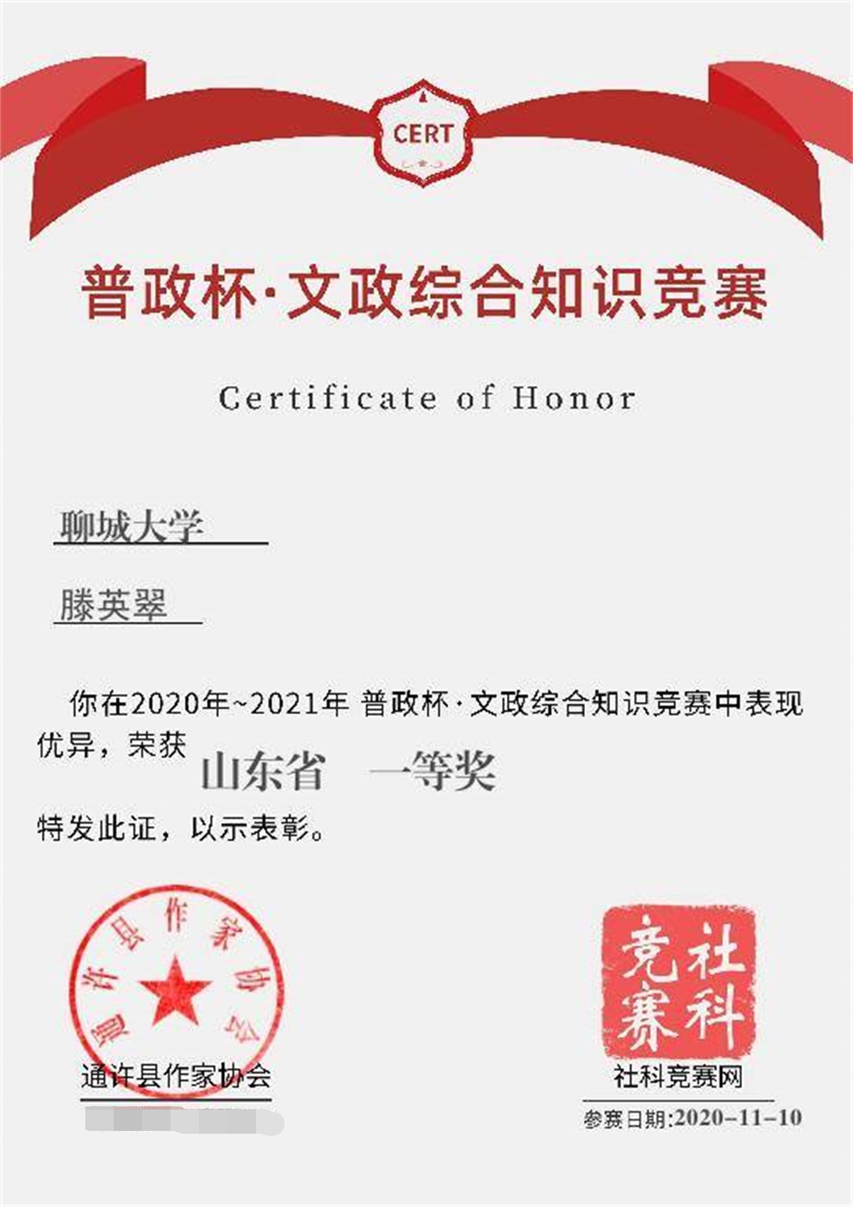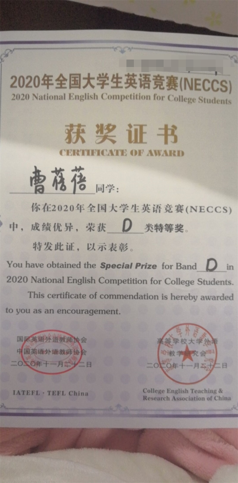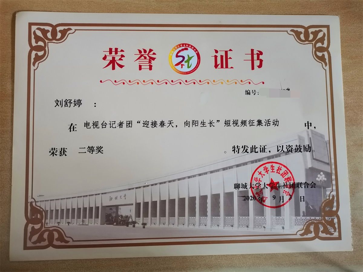 迟雪婷获得.j年山东省老员工“教育杯”英语写作大赛获得二等奖pg