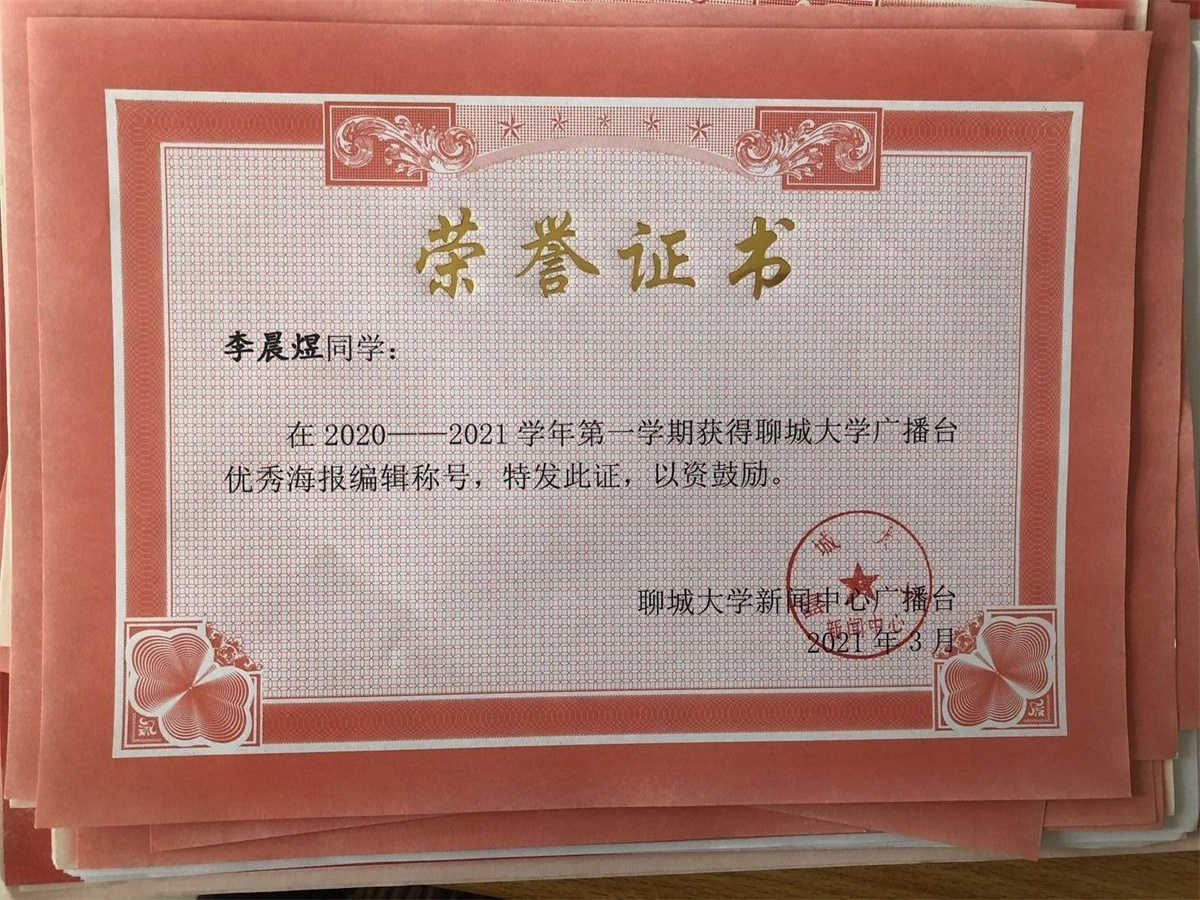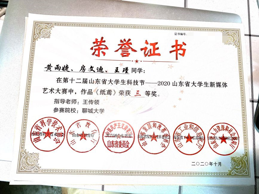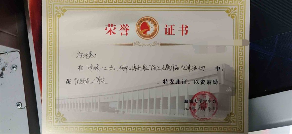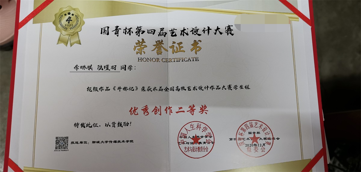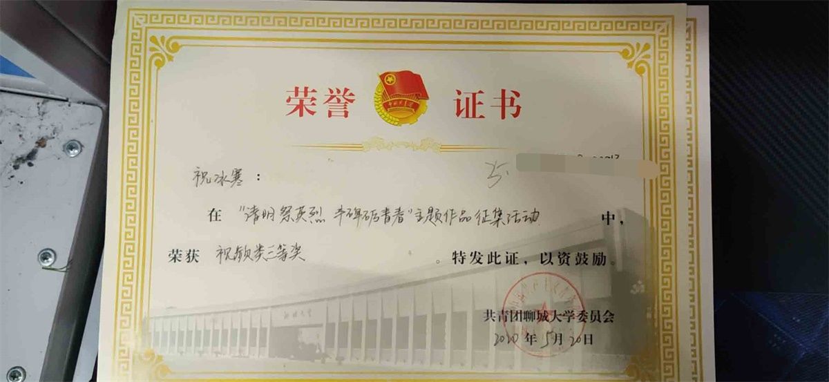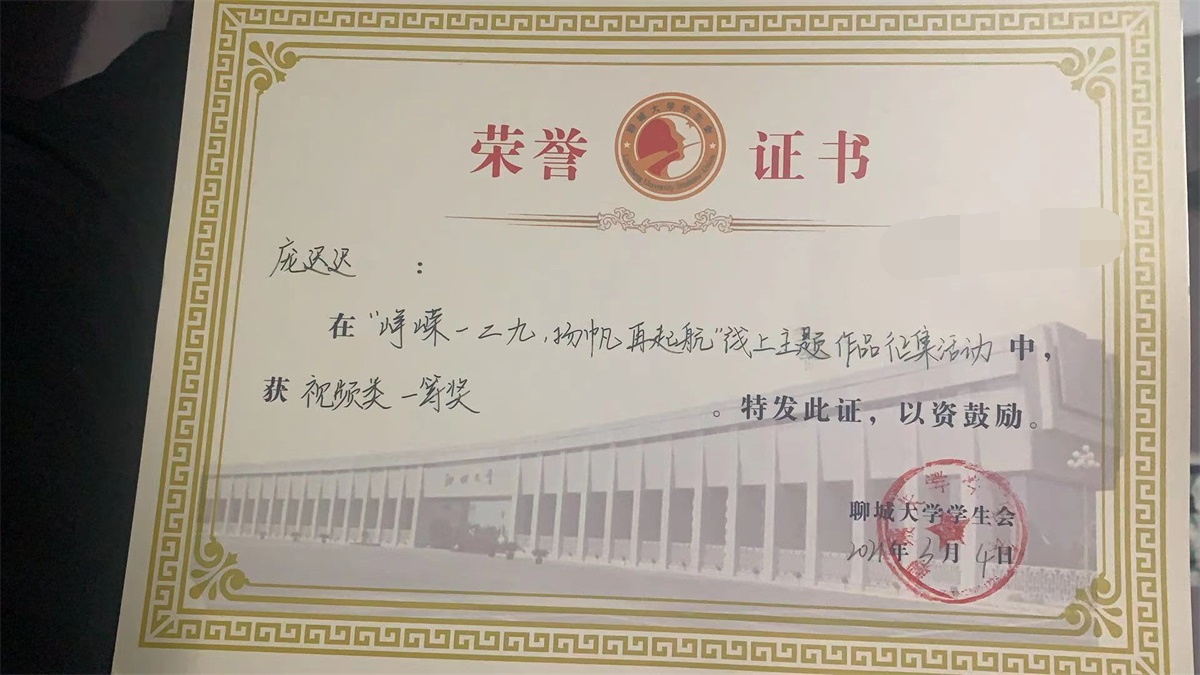 庞迟迟在“峥嵘129,扬帆再起航”活动中获得视频类一等奖
