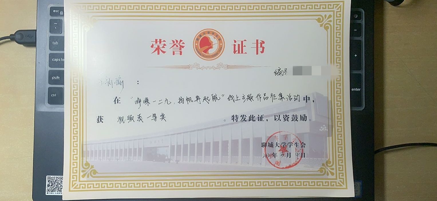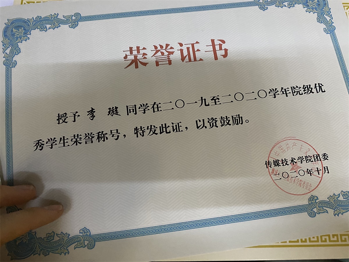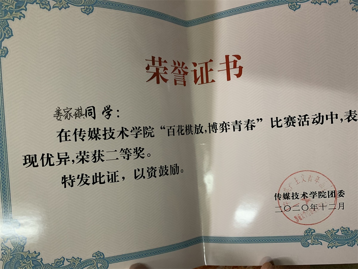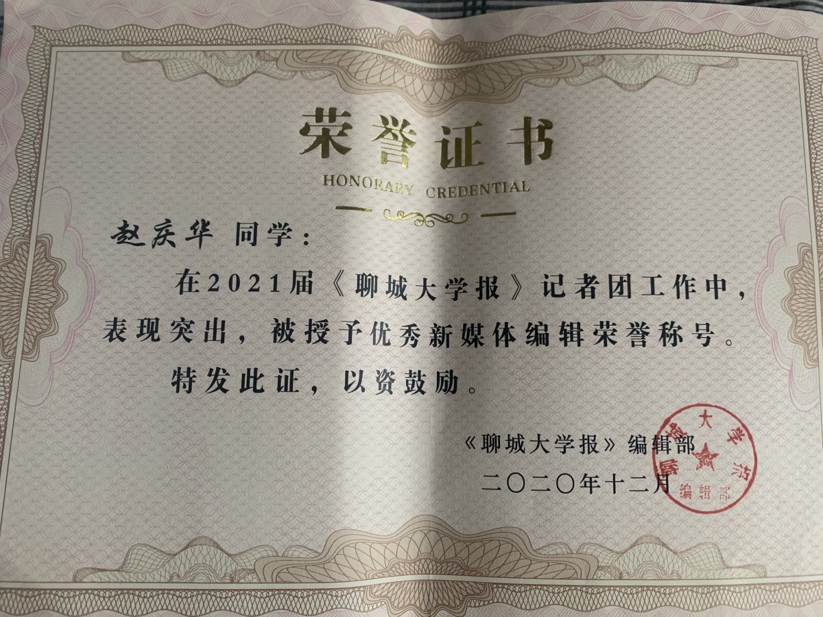 庞迟迟在“峥嵘129,扬帆再起航”活动中获得视频类一等奖