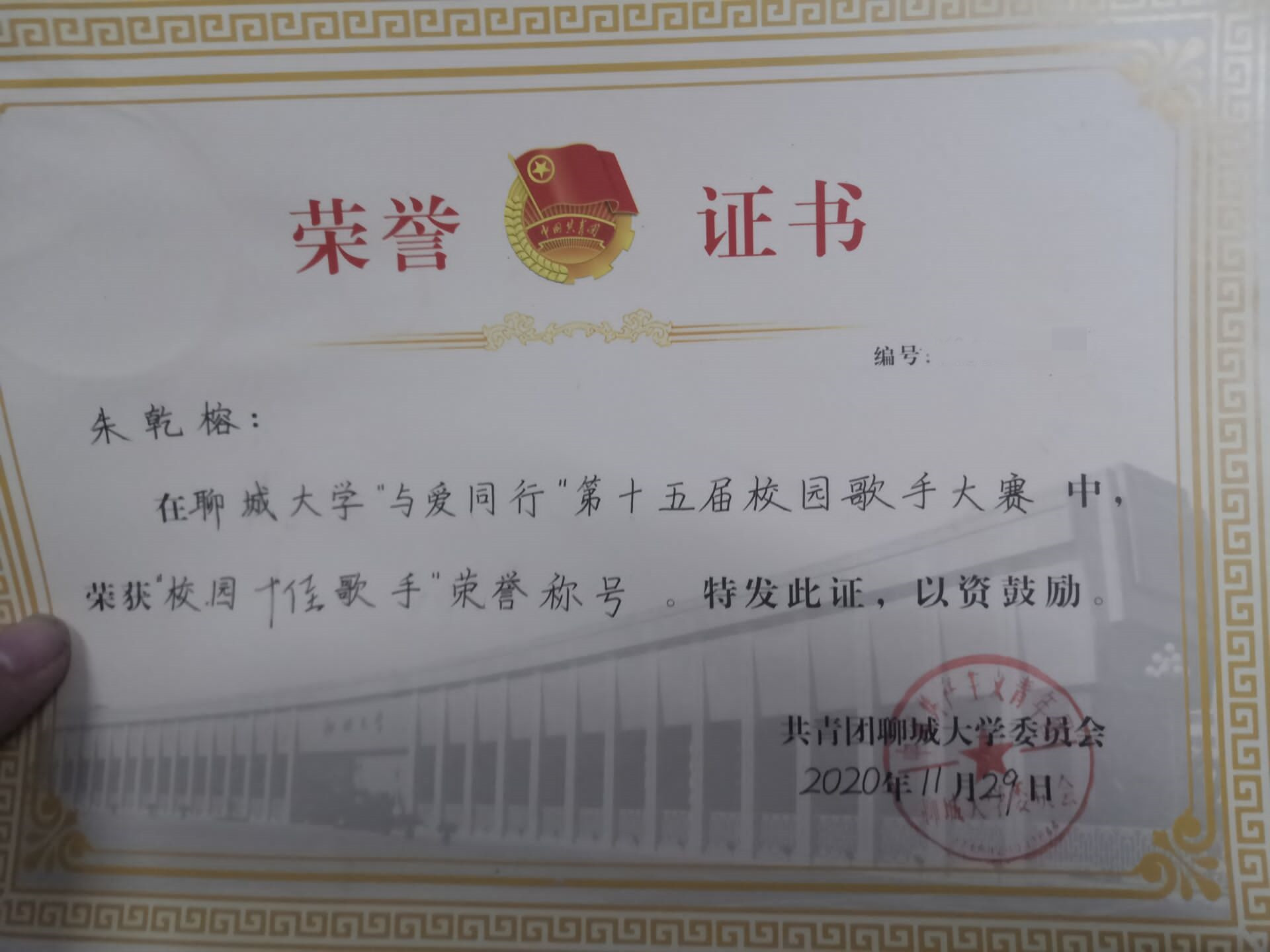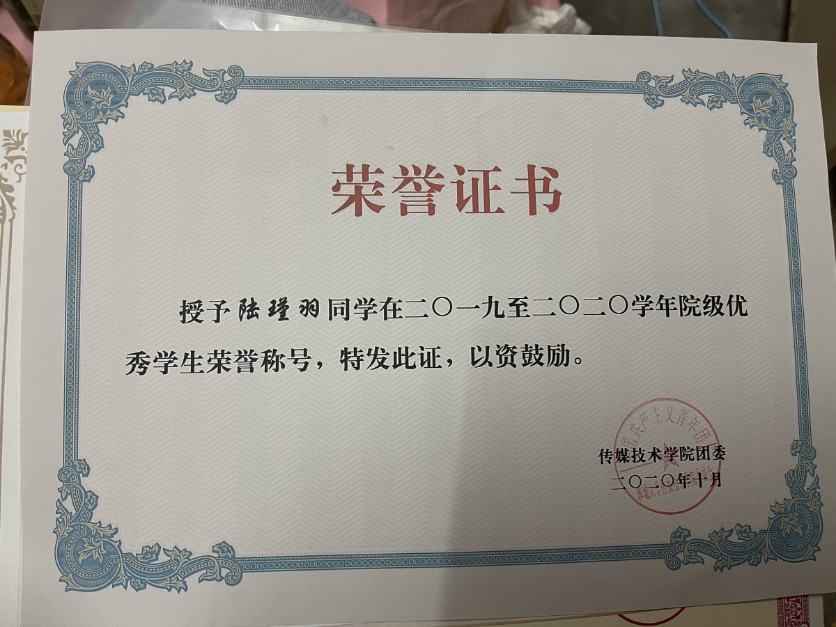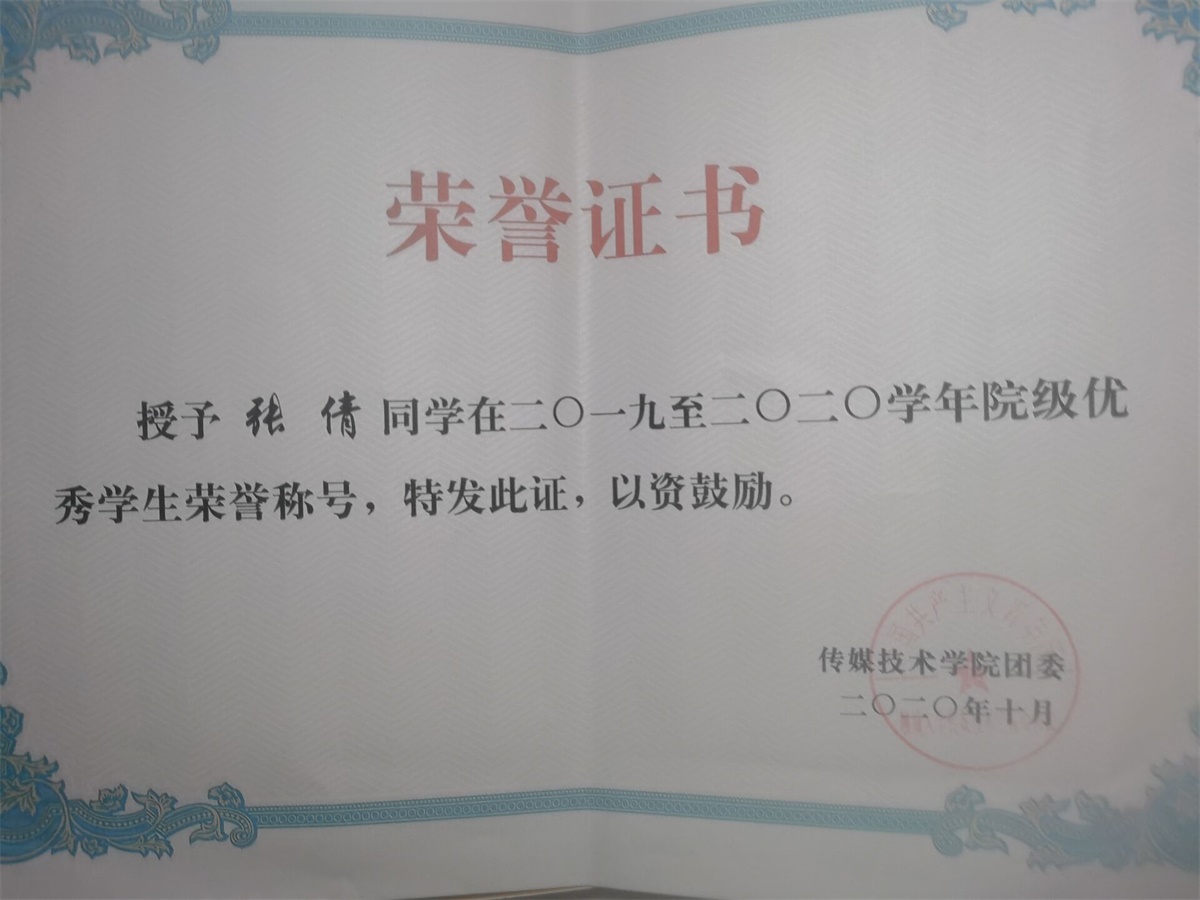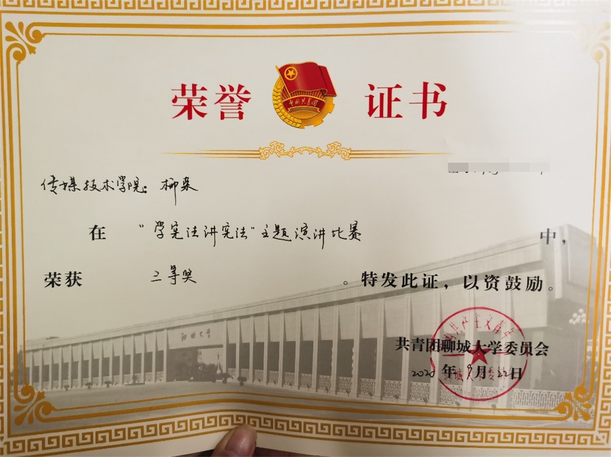 庞迟迟在“峥嵘129,扬帆再起航”活动中获得视频类一等奖