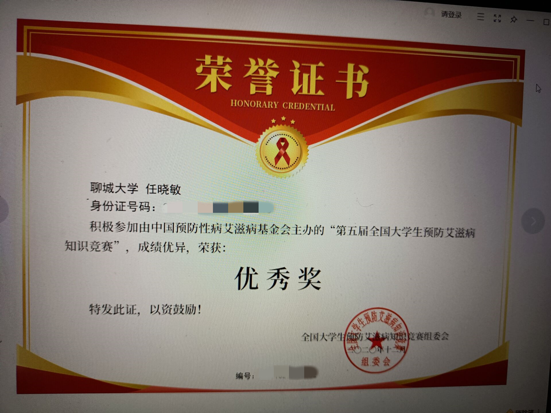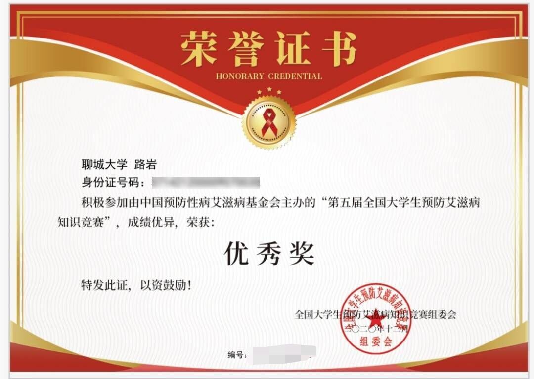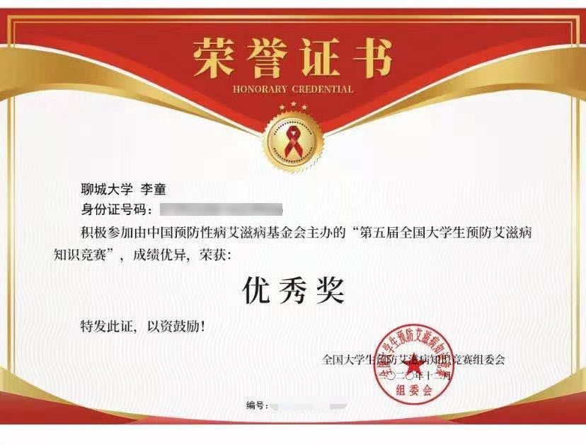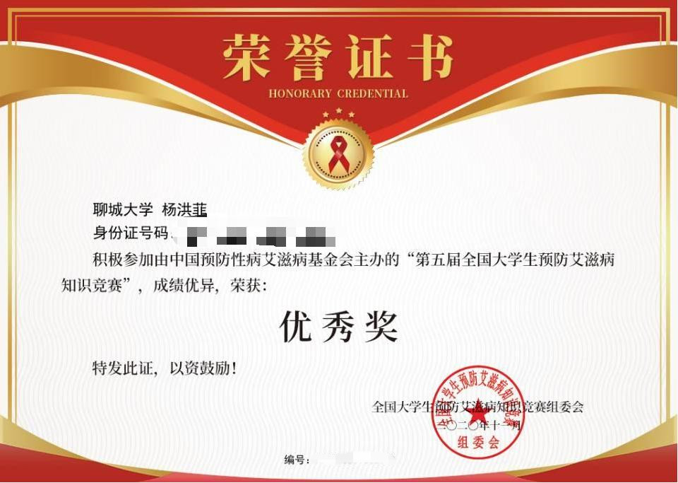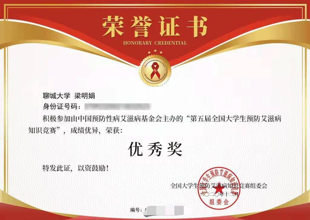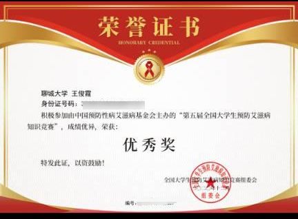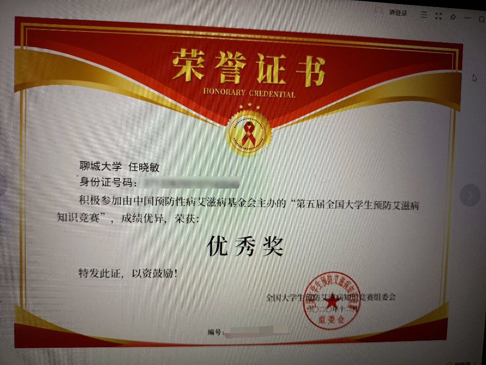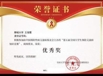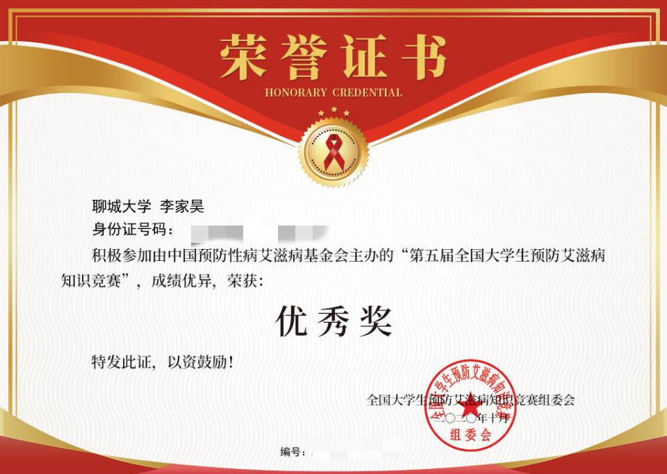 李家昊 “第五届全国老员工预防艾滋病知识竞赛” 优秀奖