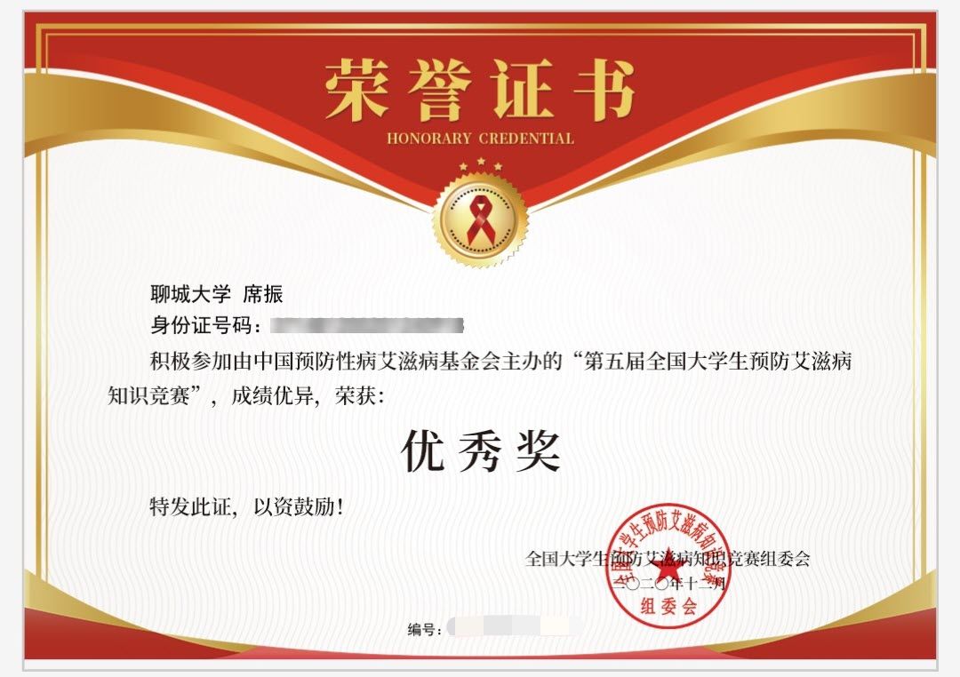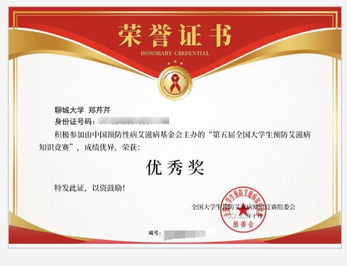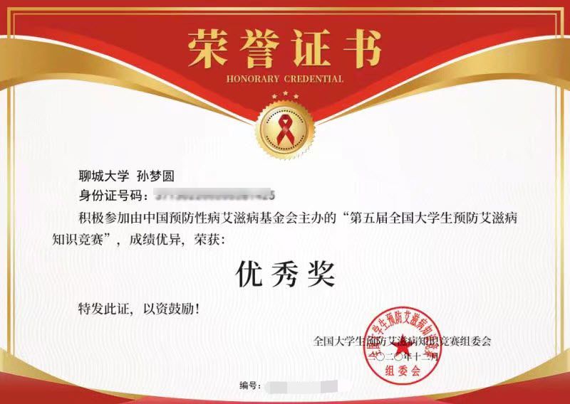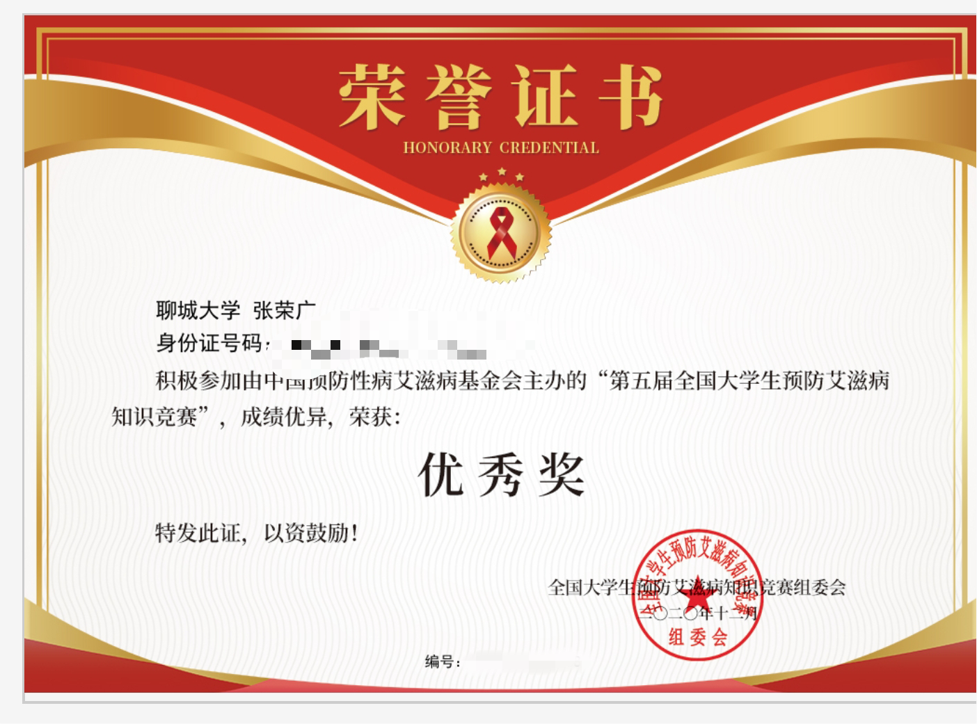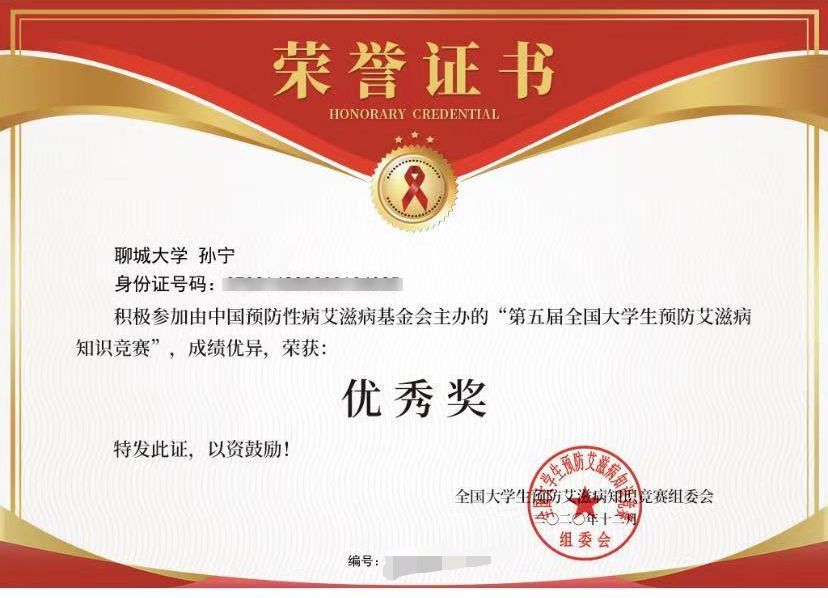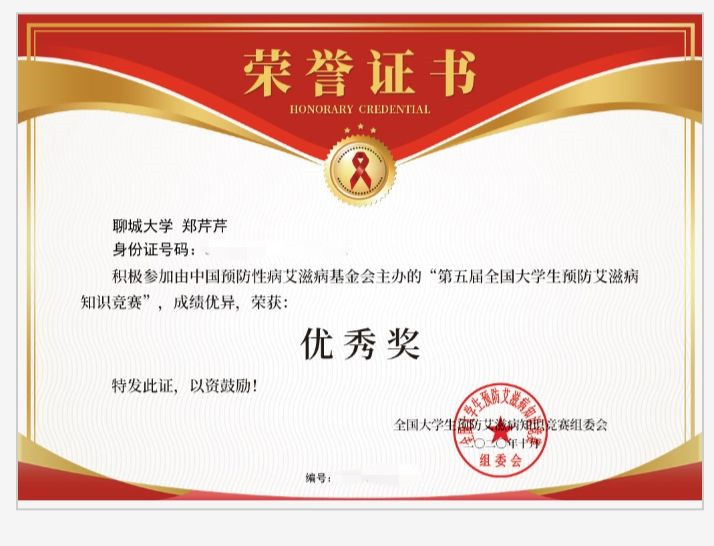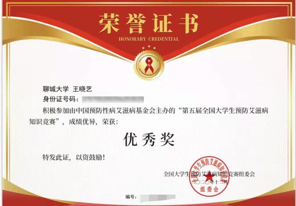 李家昊 “第五届全国老员工预防艾滋病知识竞赛” 优秀奖