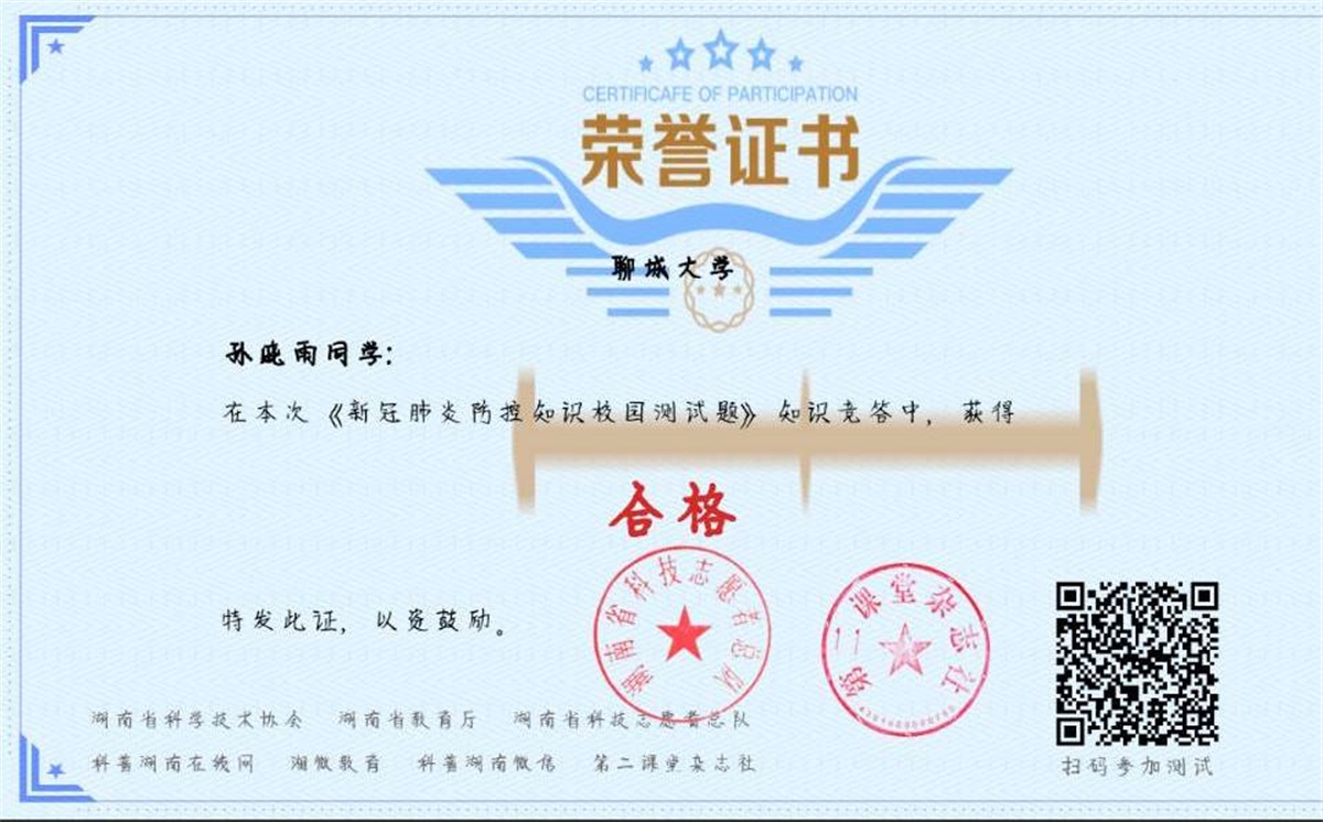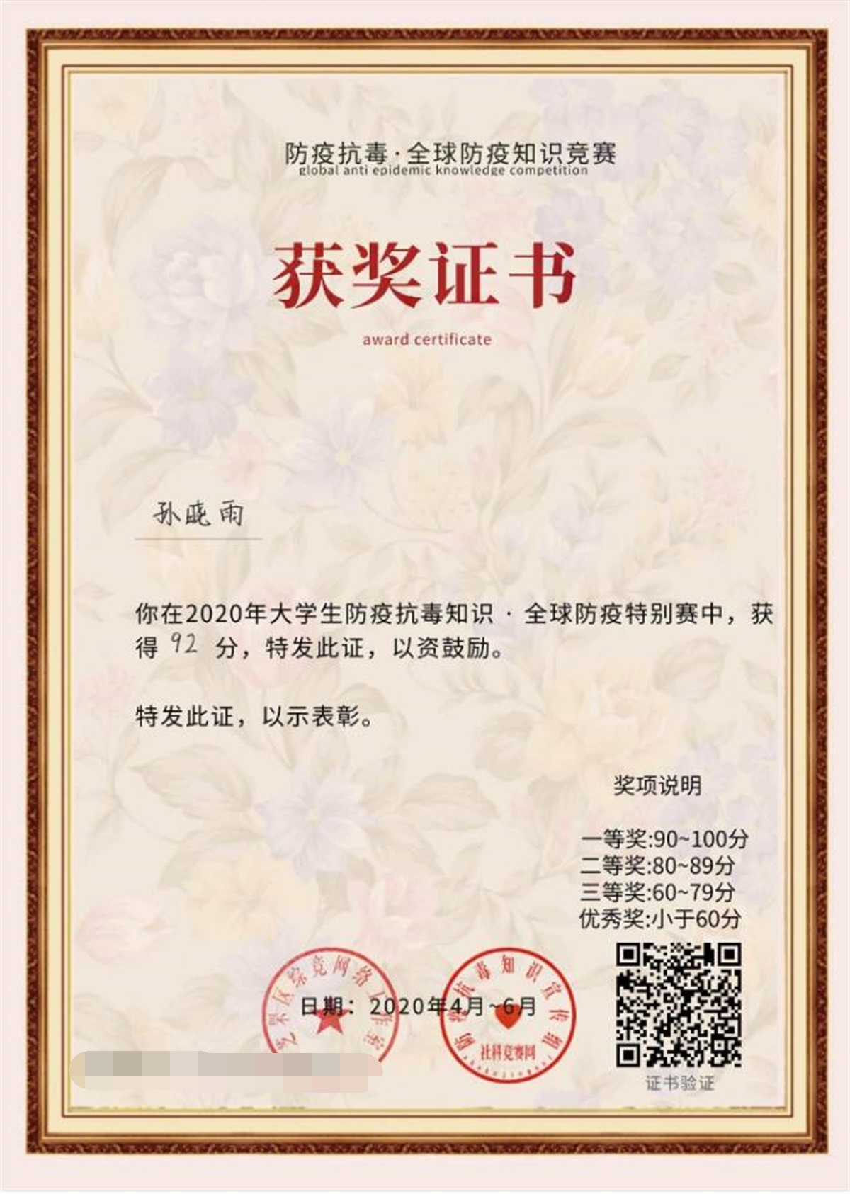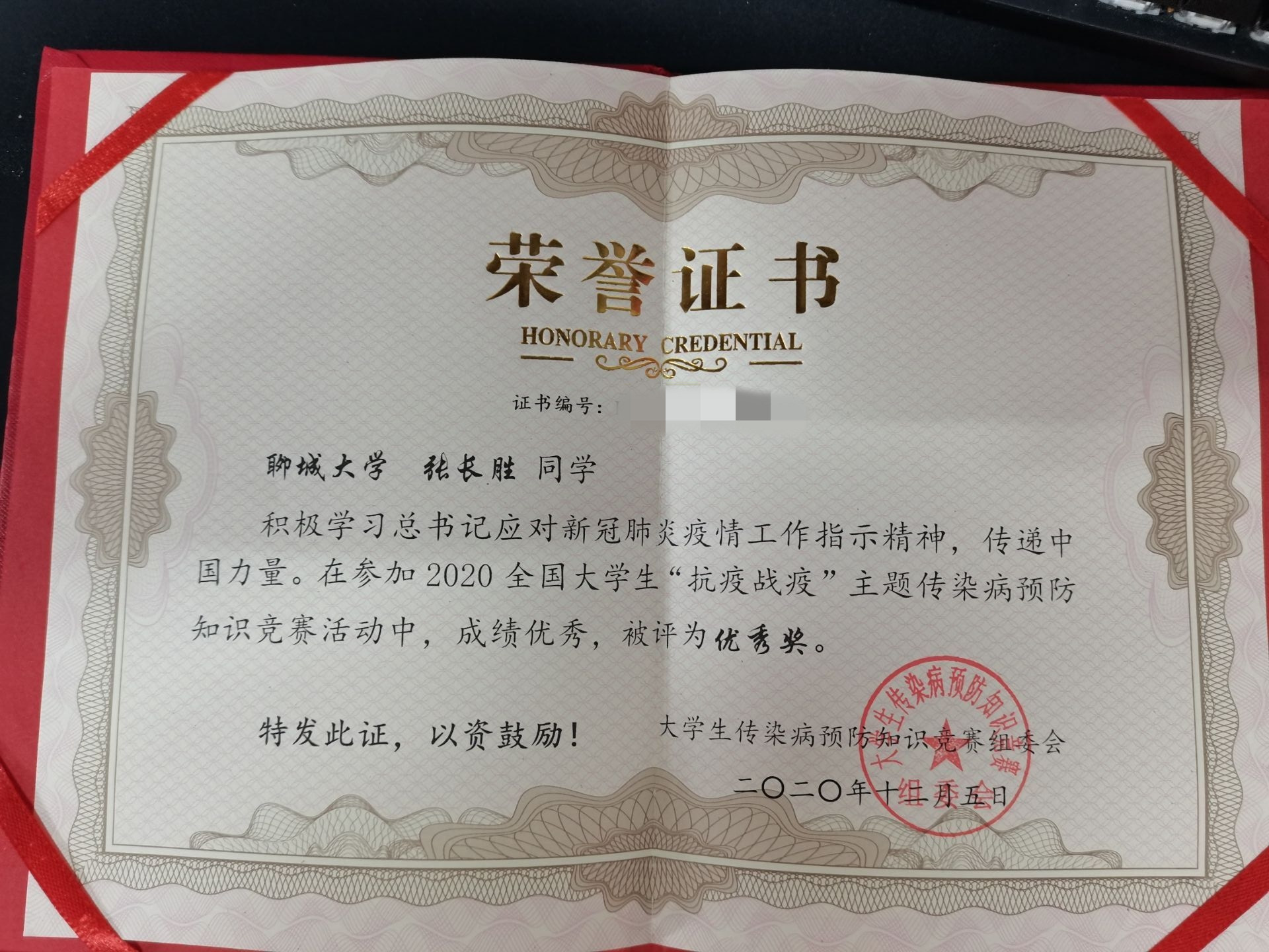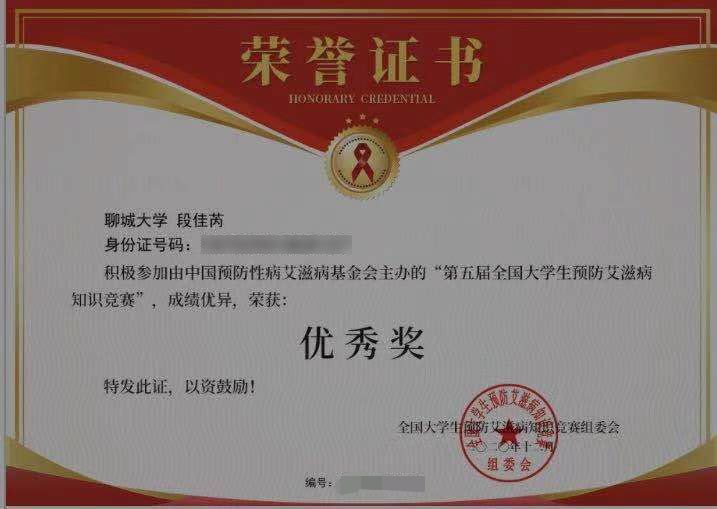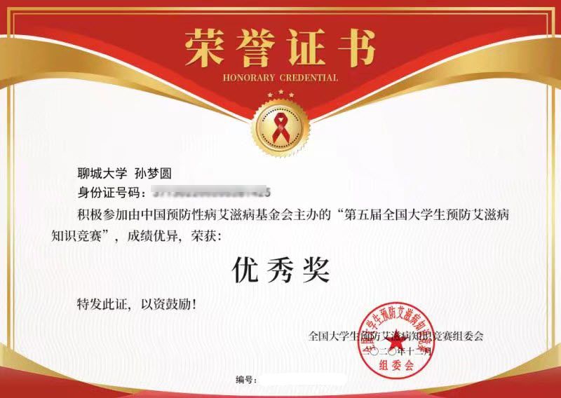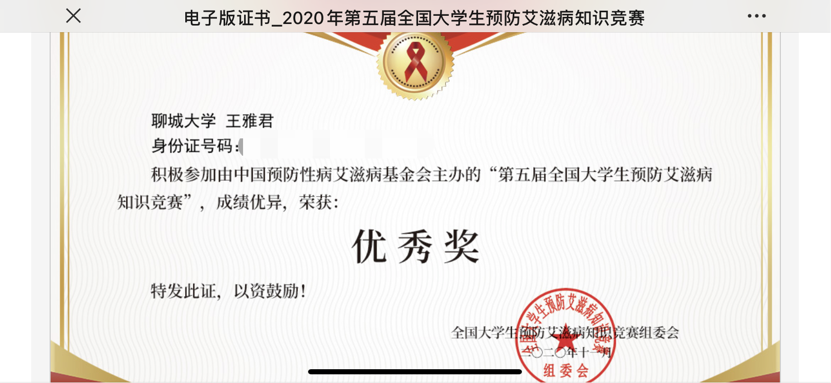 李家昊 “第五届全国老员工预防艾滋病知识竞赛” 优秀奖