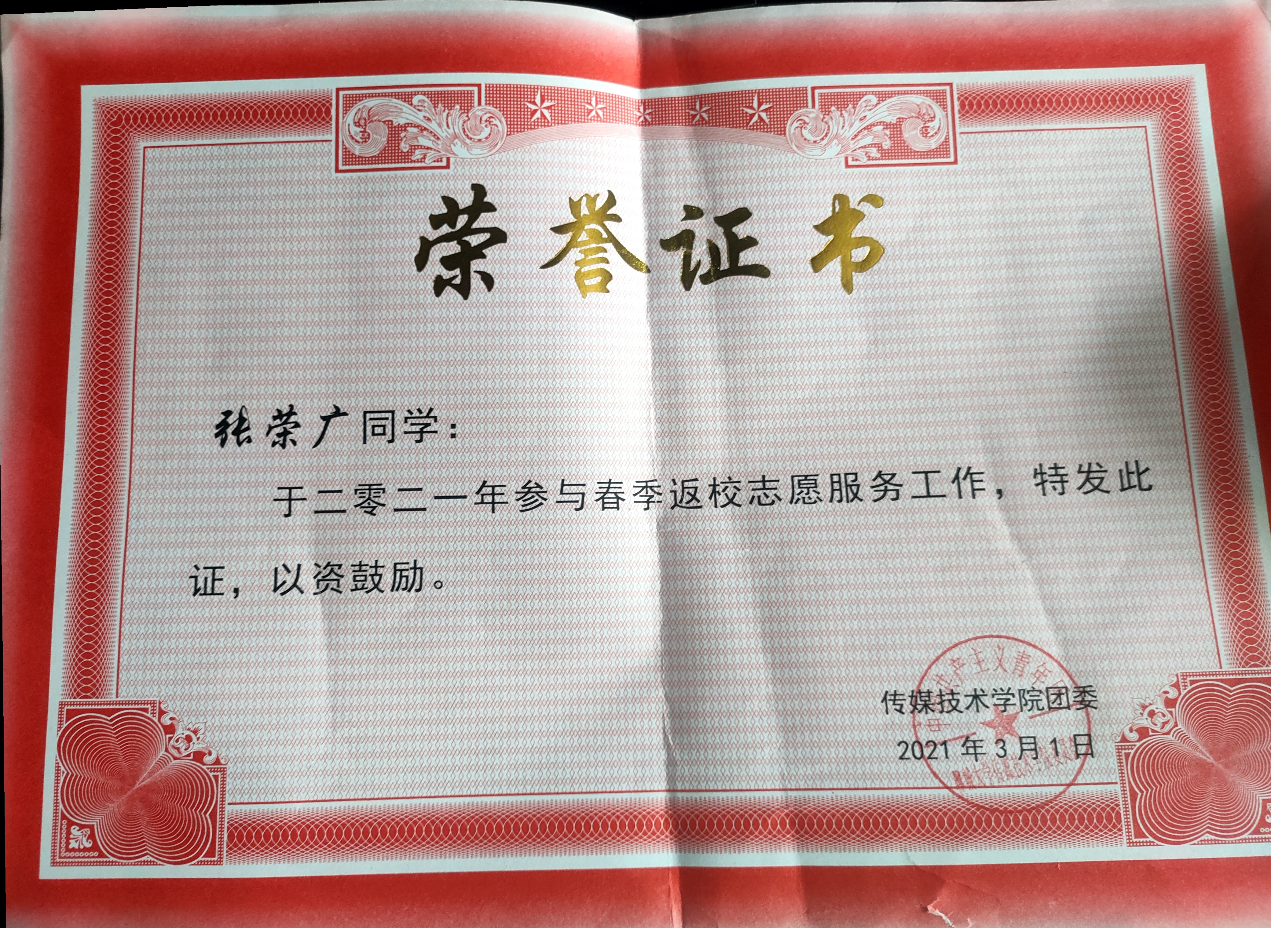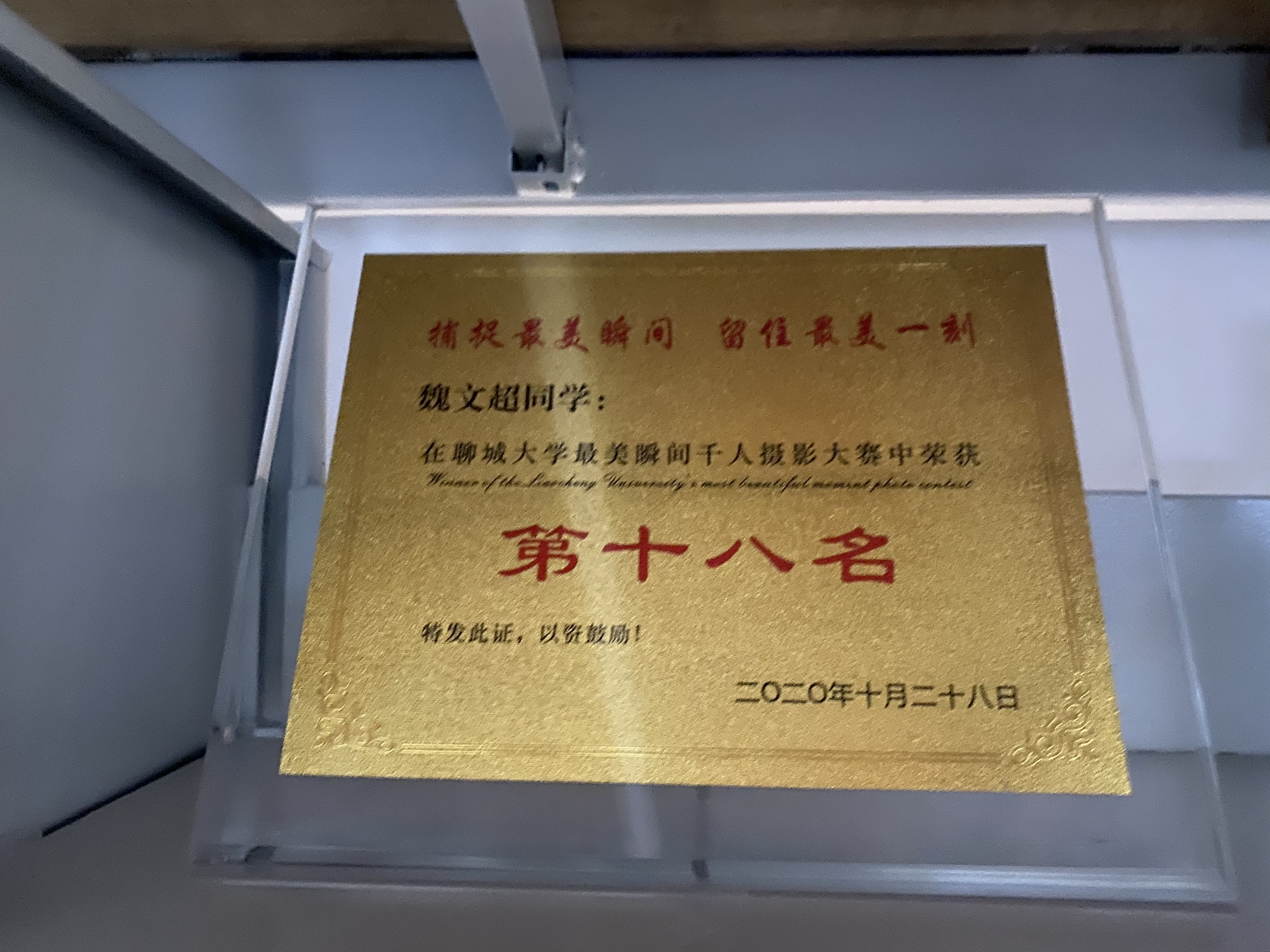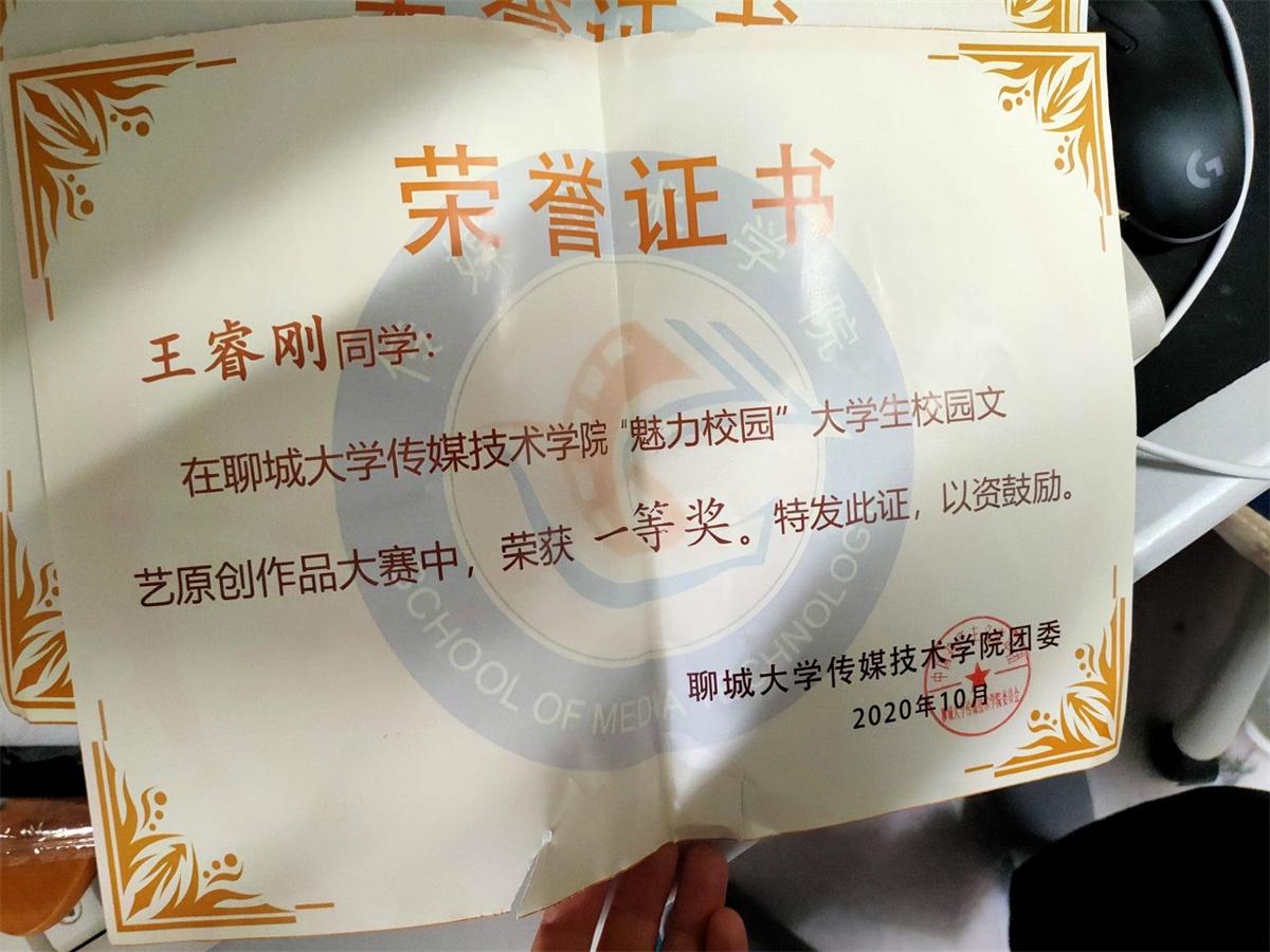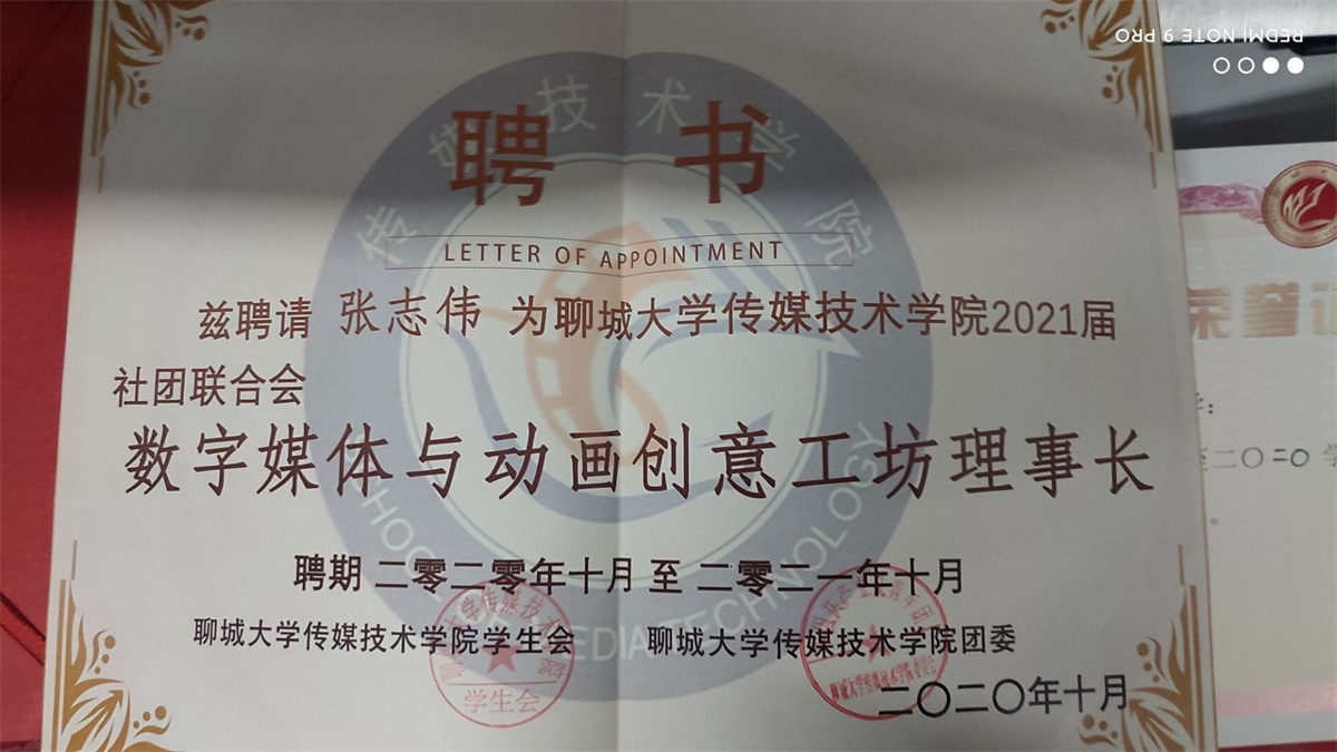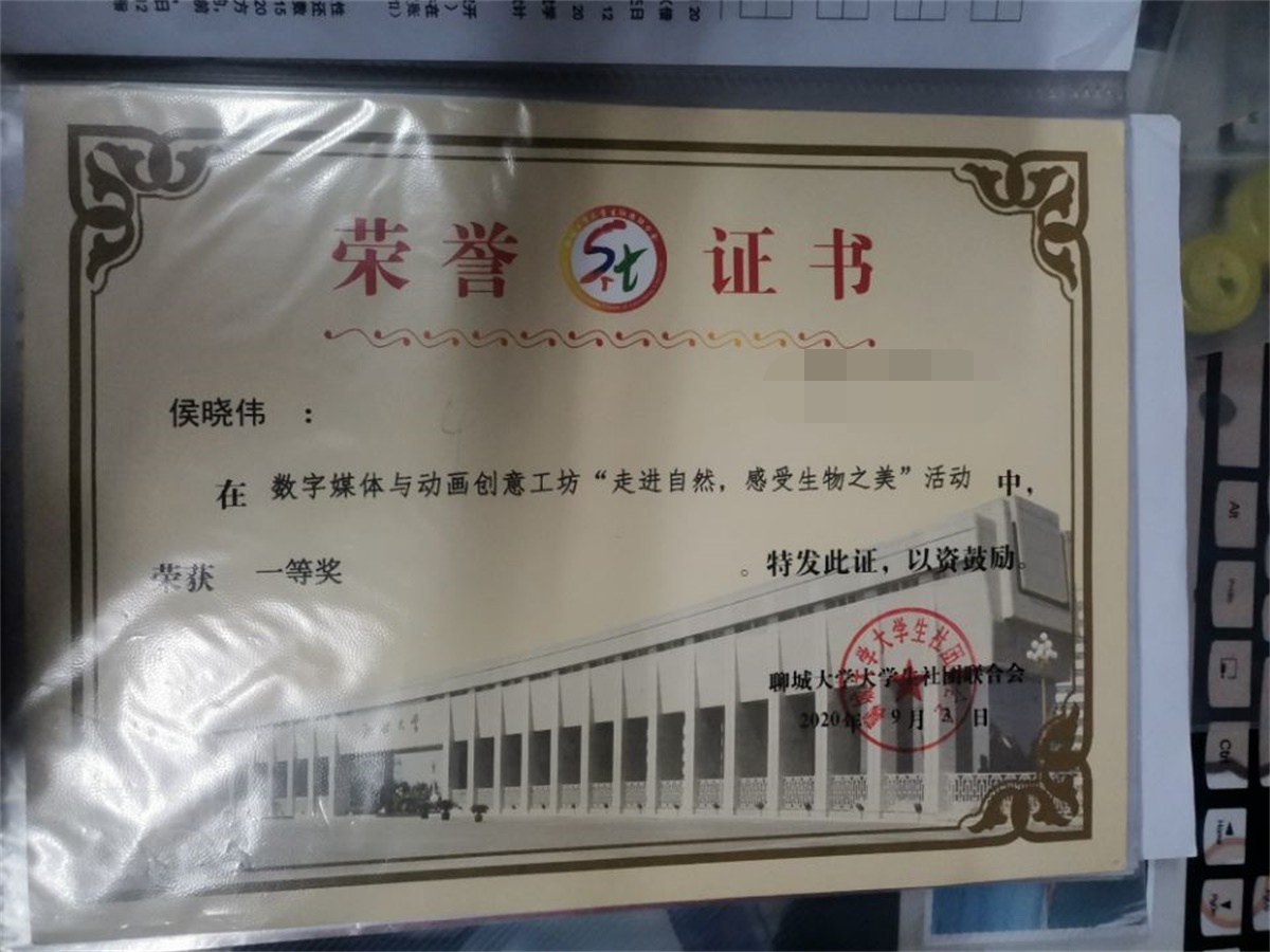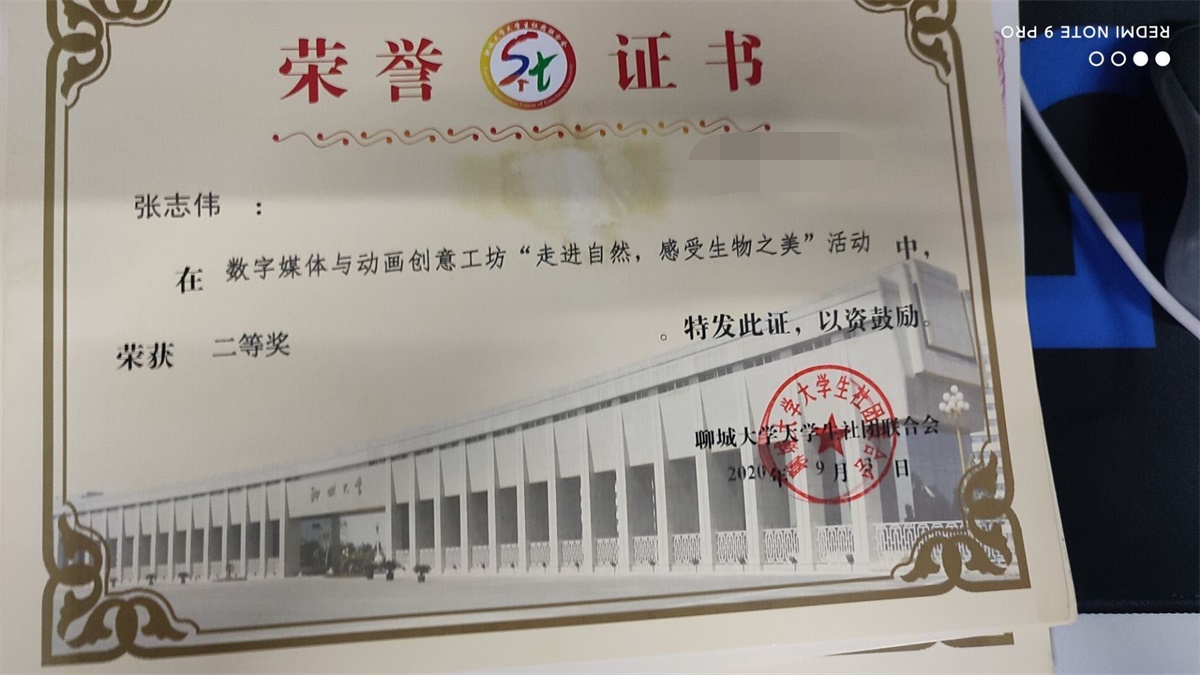 张志伟在数字媒体与动画创意工坊“你与世界相拥只差一台相机”中获得二等奖
