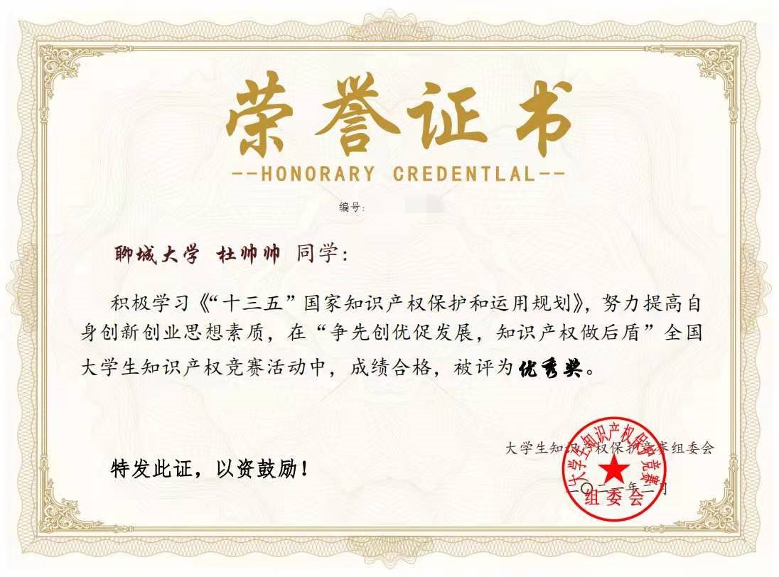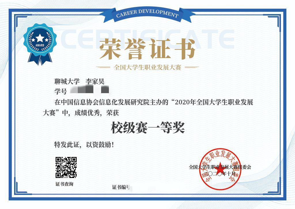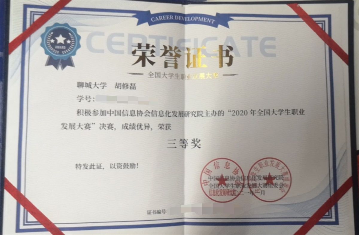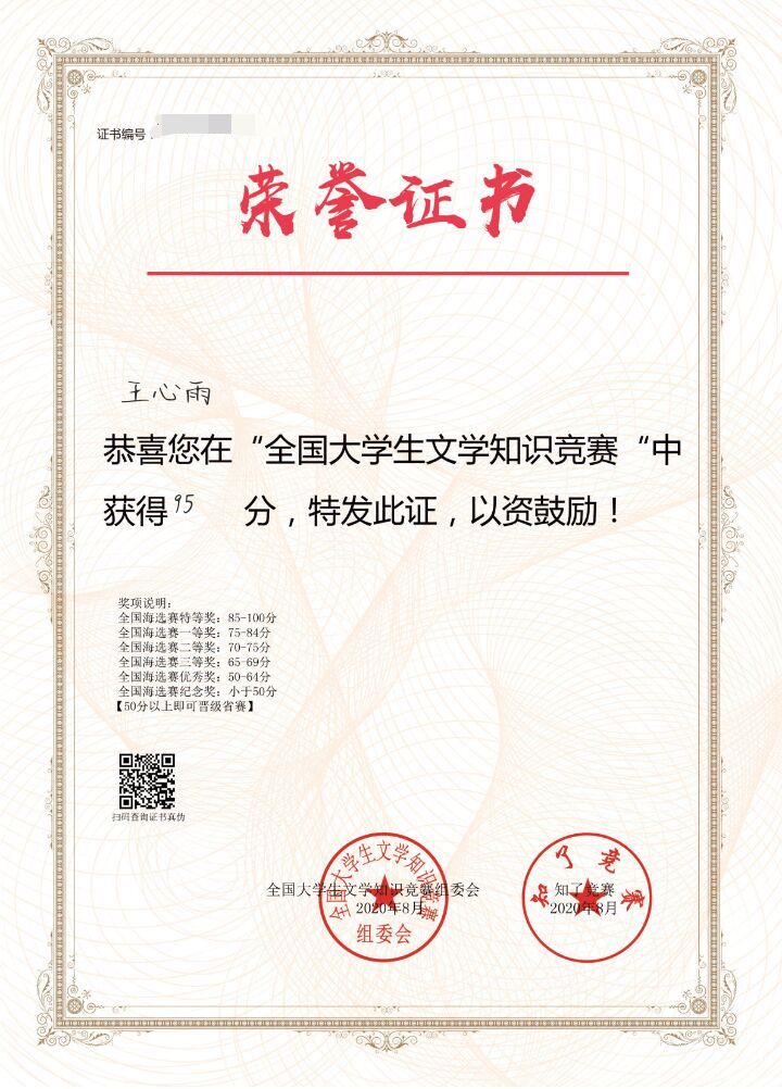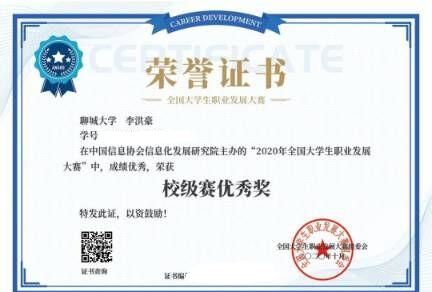刘雨豪,2020年全国创新教育成果征集活动高校一等奖