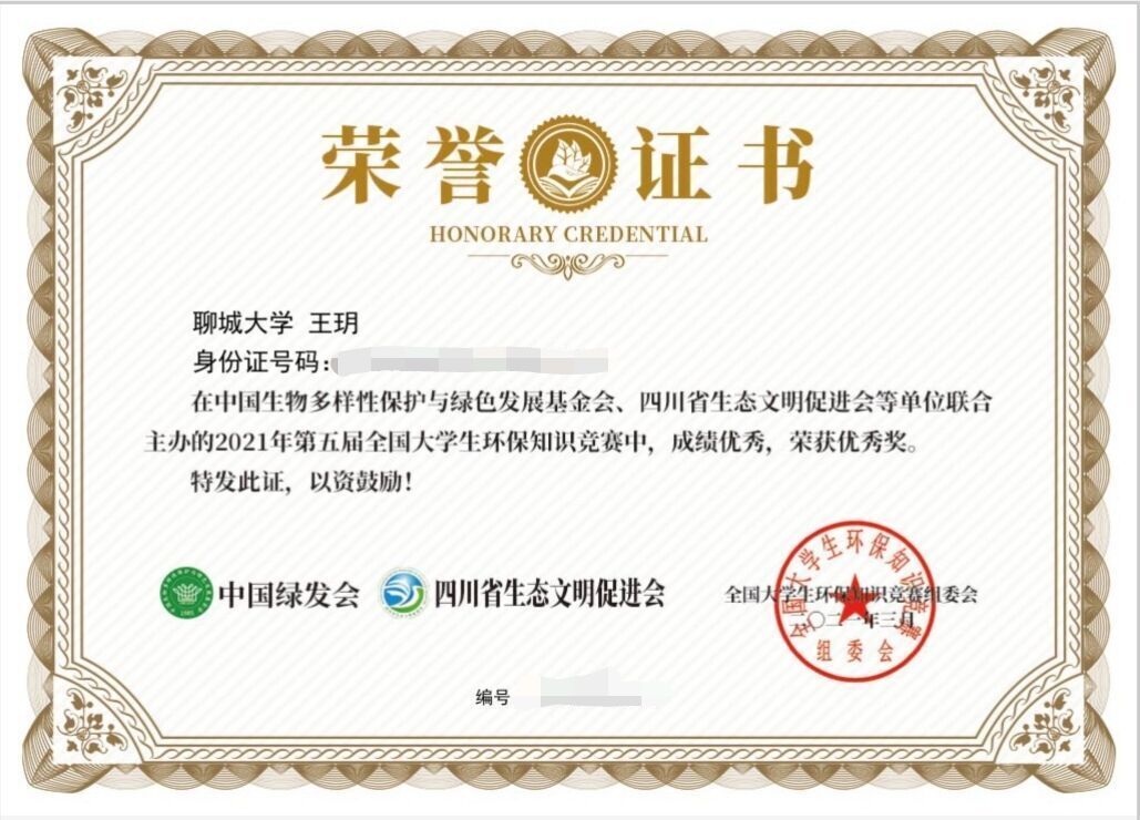 司淑欣荣获感恩地球人与自然和谐共生视频征集活动三等奖