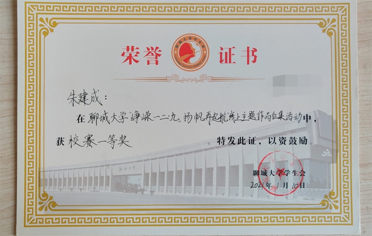 朱建成获得w66“峥嵘一二九,扬帆再起航”校赛一等奖