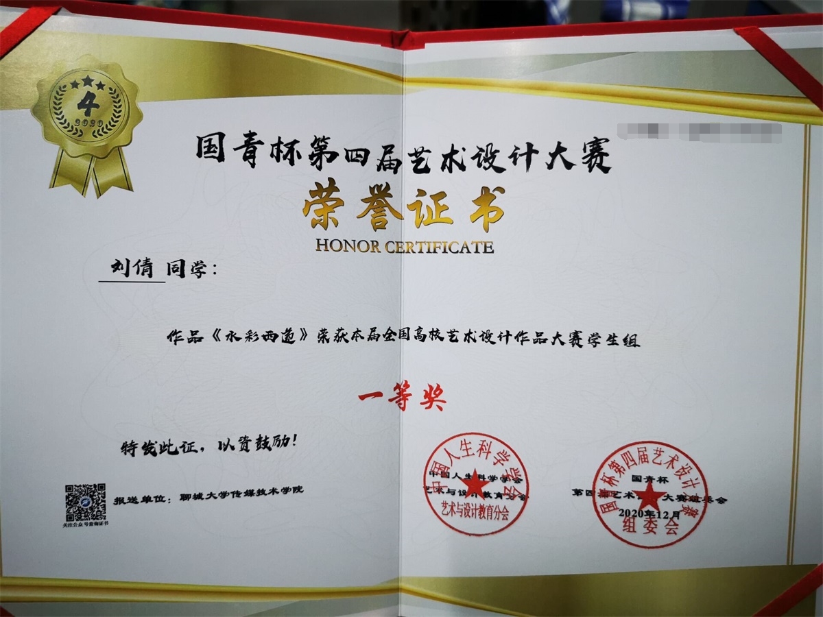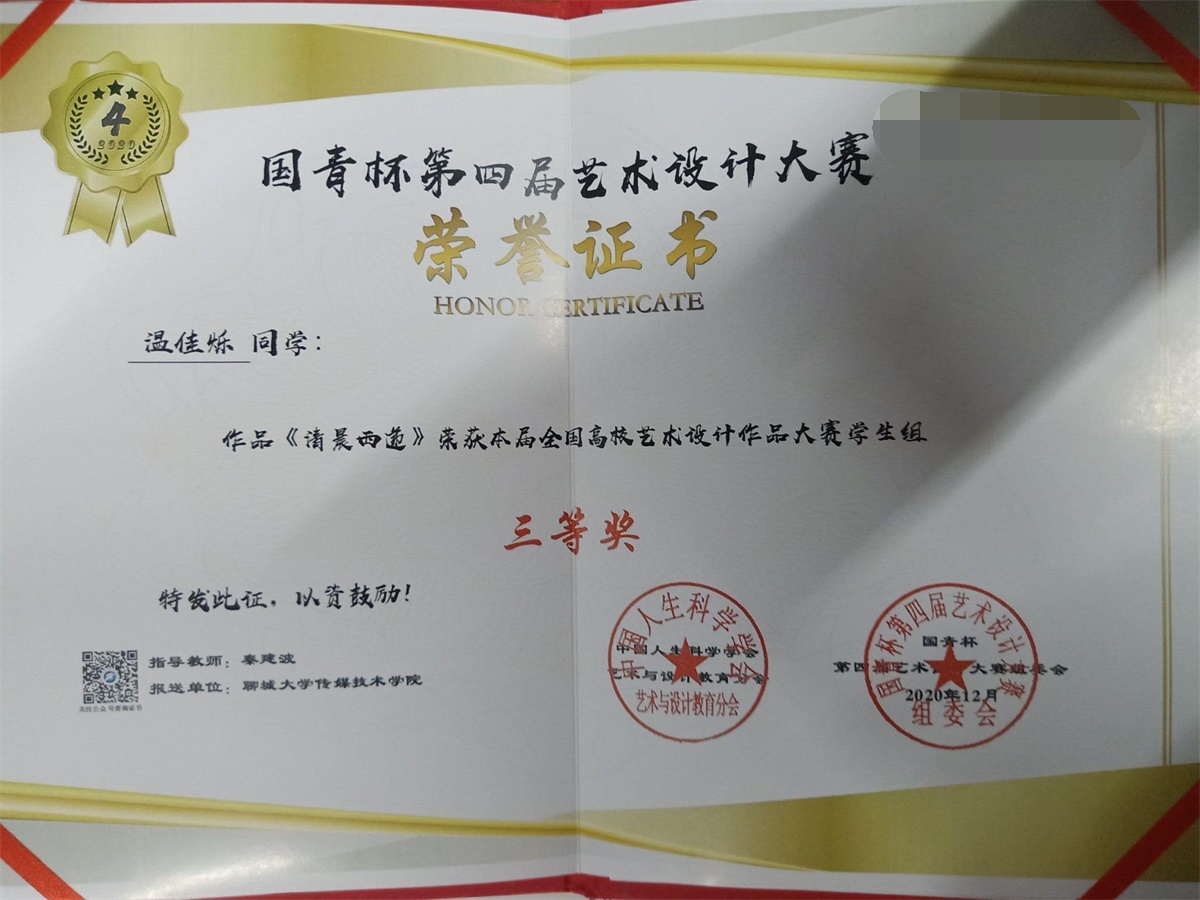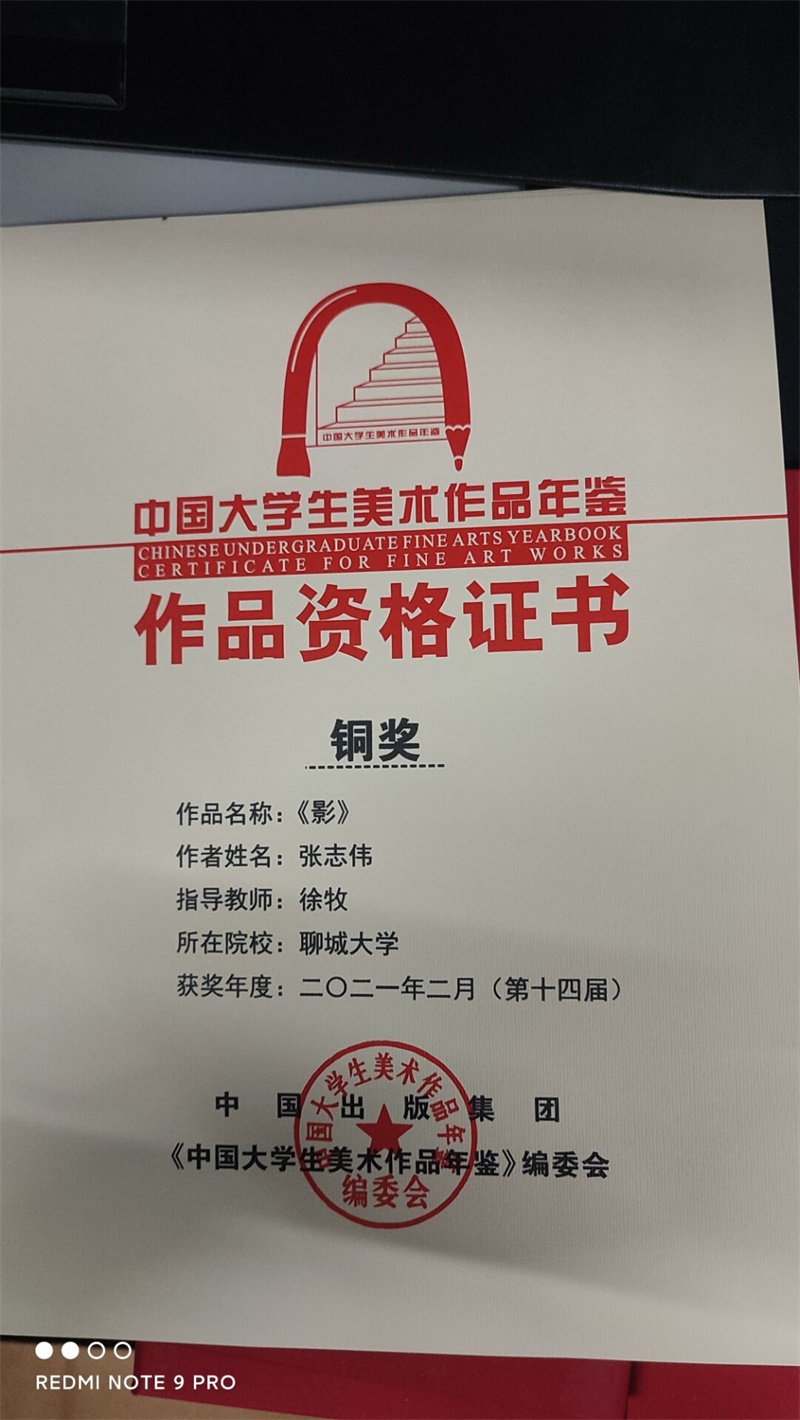 温佳烁 王新灵的作品《印象聊城》获得全国高校艺术十二届作品大赛二等奖