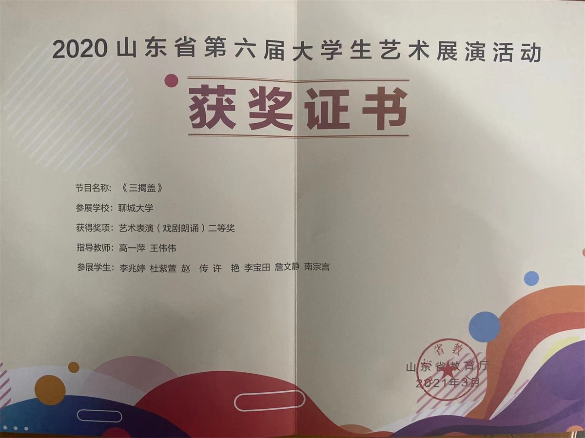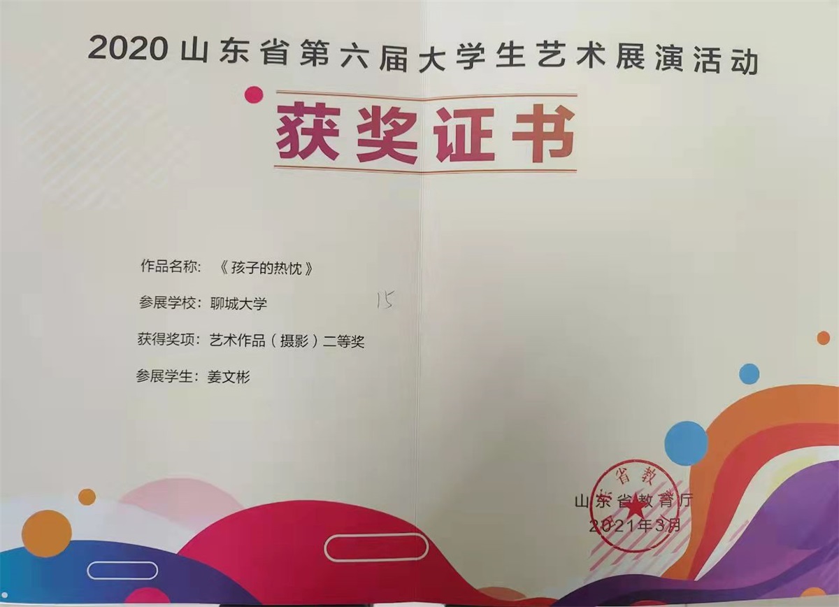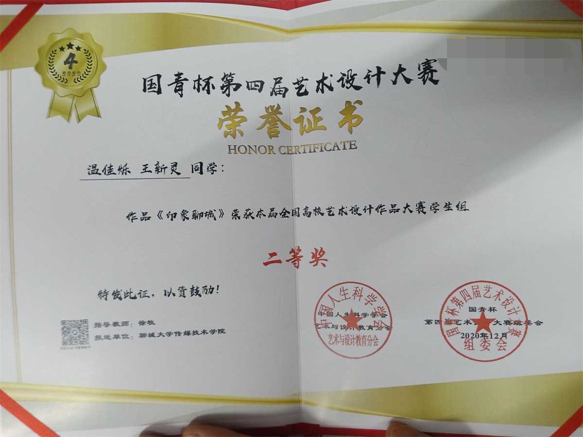 温佳烁 王新灵的作品《印象聊城》获得全国高校艺术十二届作品大赛二等奖