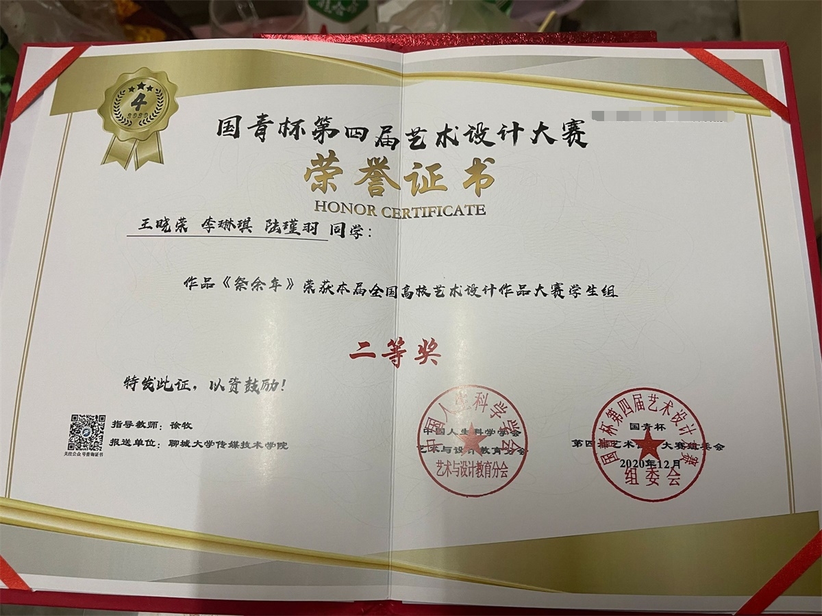 王晓荣 李琳琪 陆瑾羽的《祭余年》获得国青杯第四届艺术设计大赛