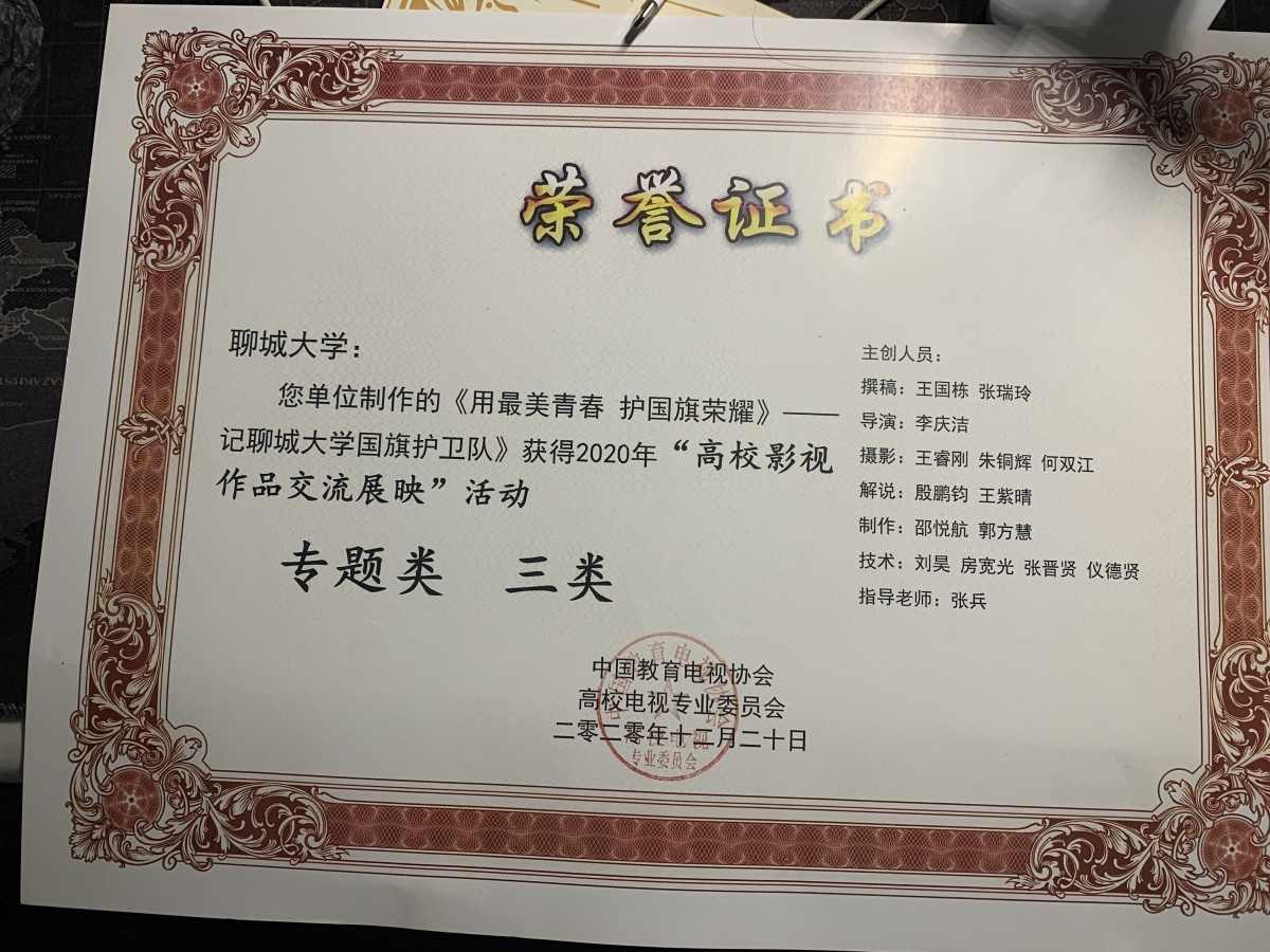 《用最美青春 护国旗荣耀》——《记w66国旗护卫队》获得2020年“高校影视作品交流展映”活动专题类三类