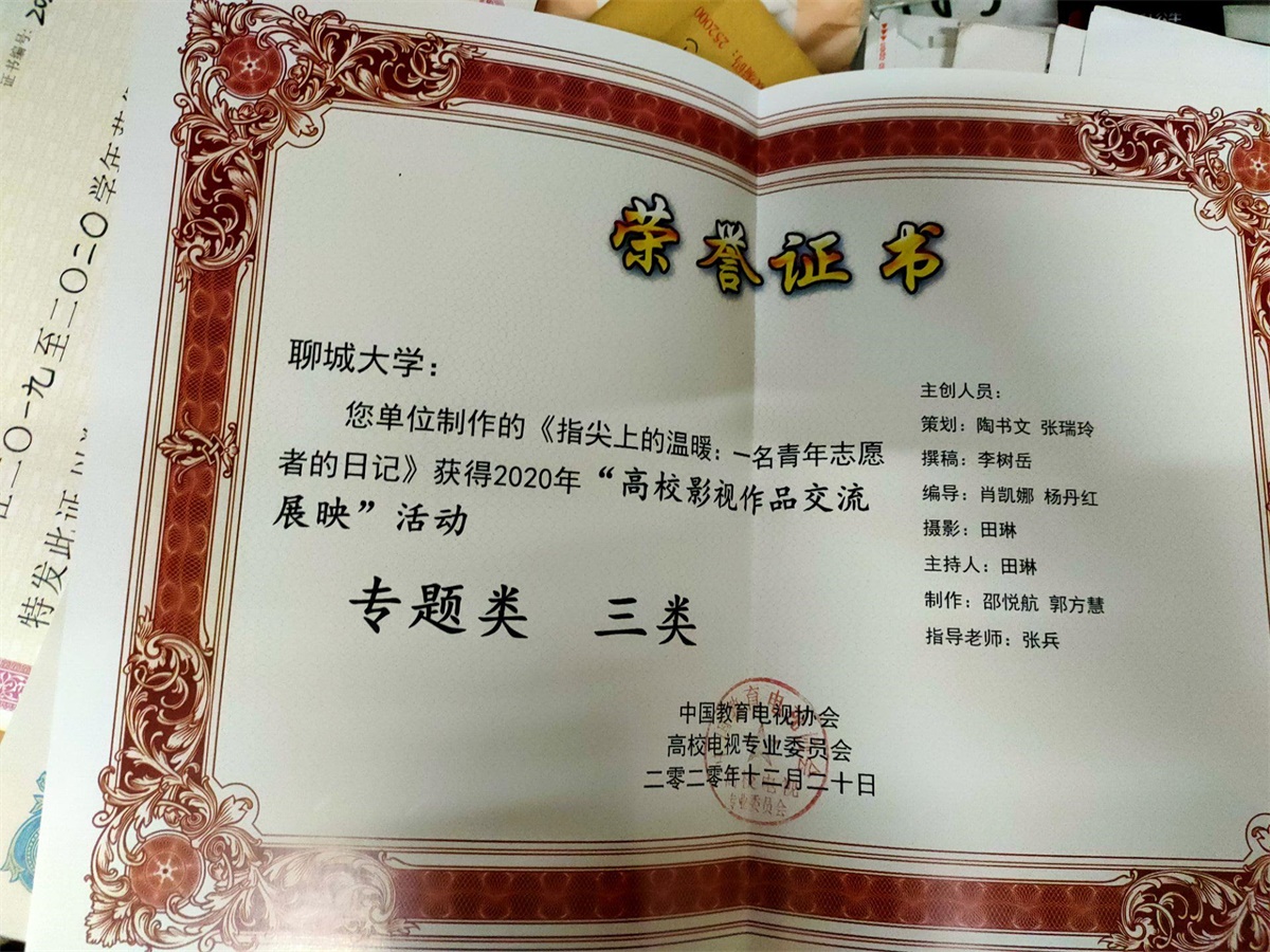 《指尖上的温暖:一名请看志愿者的日记》获得“高校影视作品交流展映专题类三类