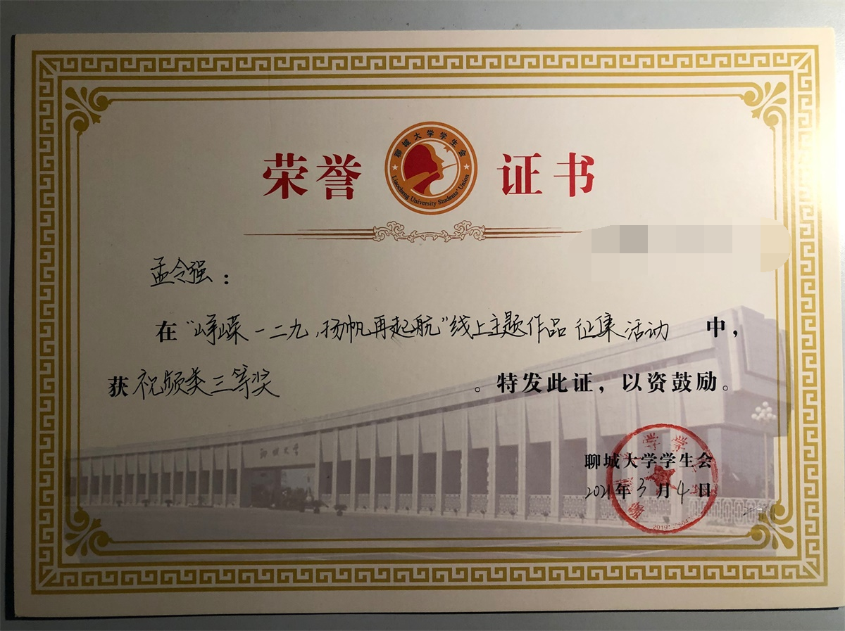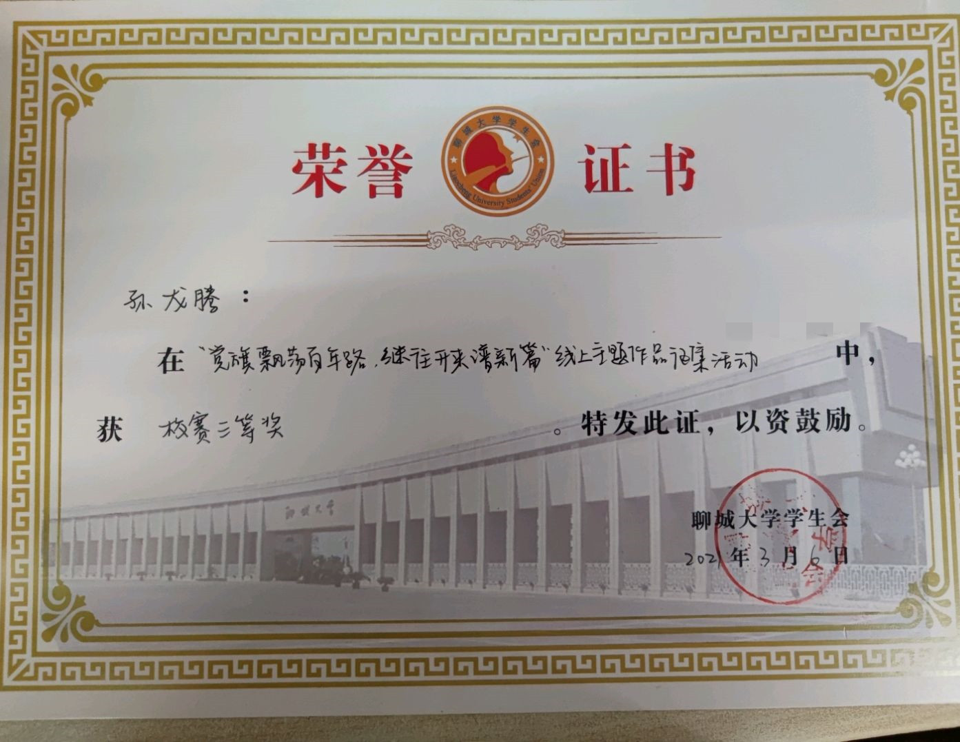 孙龙腾,“党旗飘荡百年路,继往开来谋新篇”线上主题作品征集活动校赛三等奖