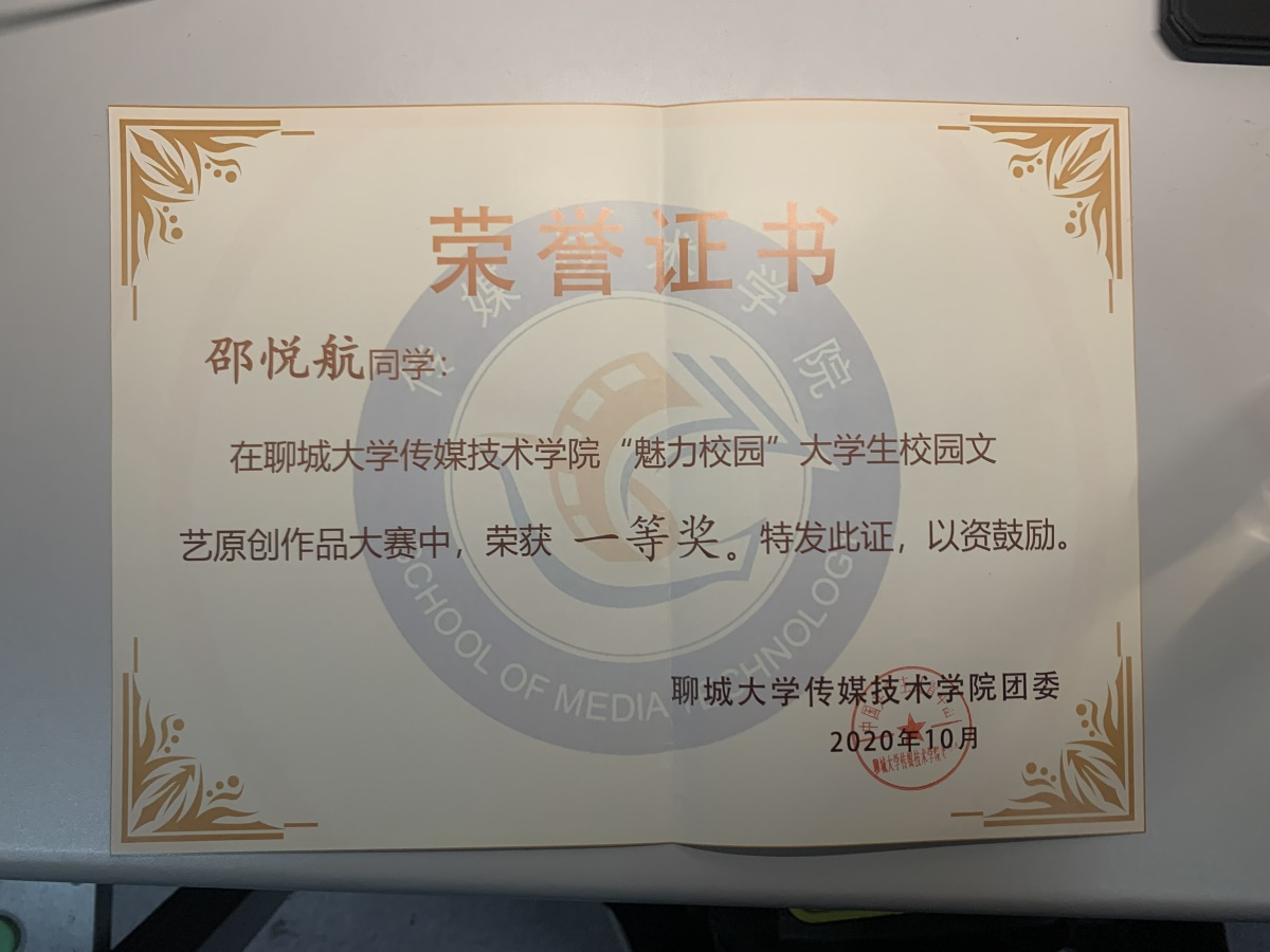 绍悦航获得w66“魅力校园”老员工校园原创作品大赛一等奖