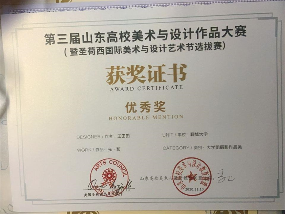 王田田的《光影》获得第三届山东高校美术与设计作品大赛三等奖