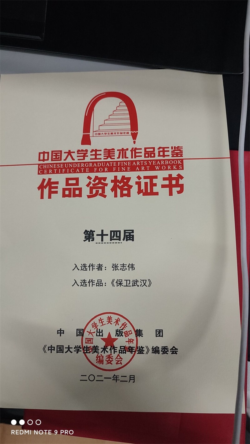 张志伟的《保卫武汉》获得中国老员工美术作品年鉴作品资格证书