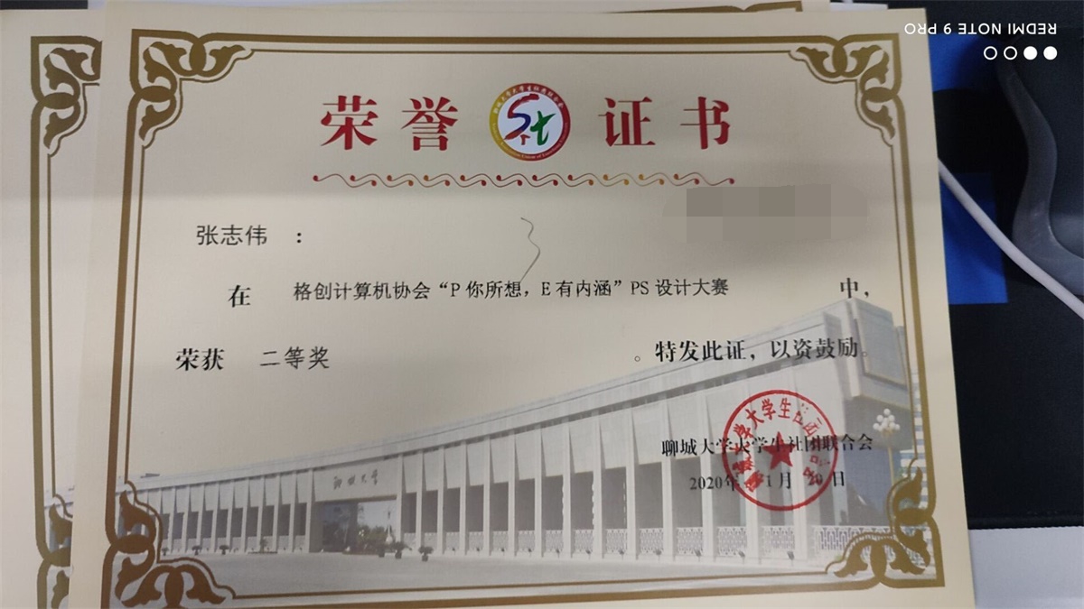 张志伟获得“格创计算机协会”P你所想 E有内涵“PS设计大赛二等奖
