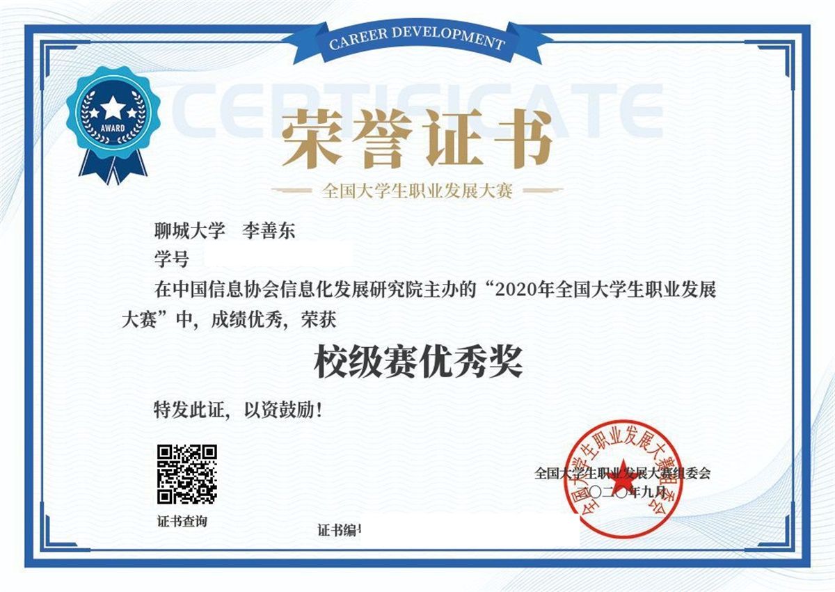李善东,2020年全国老员工职业发展大赛校级赛优秀奖