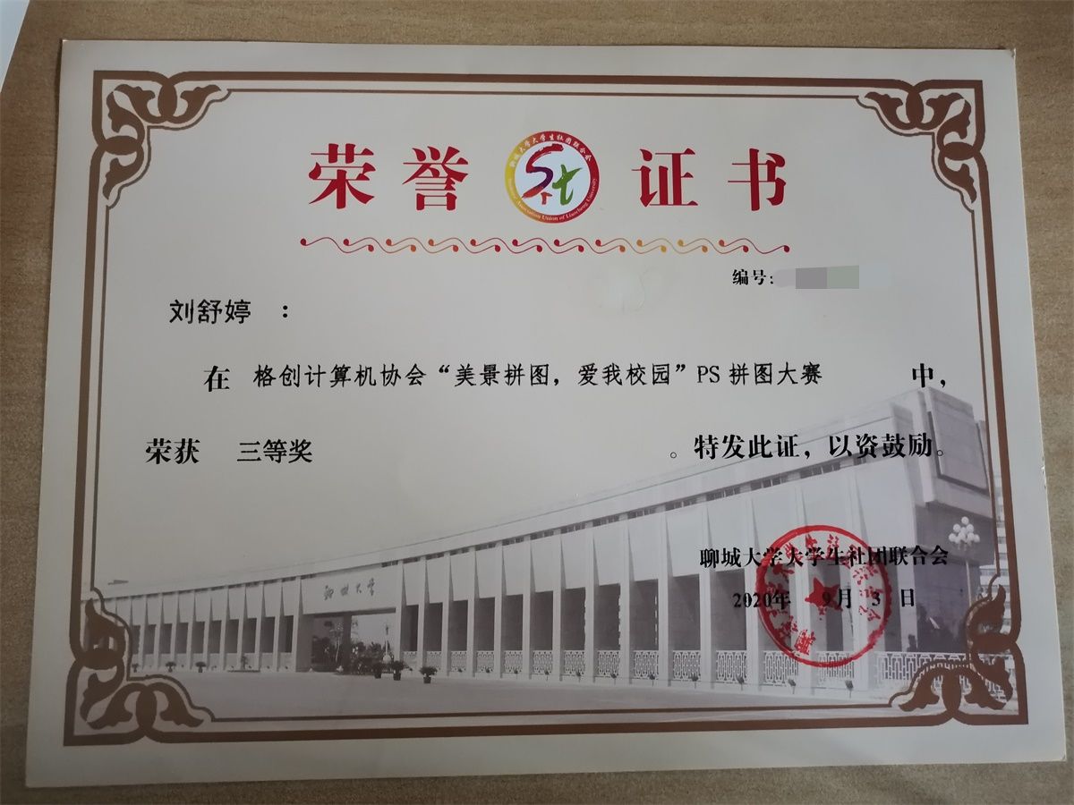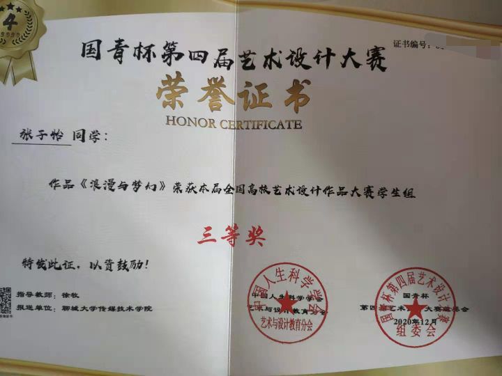刘舒婷,Photoshop CC创意设计与操作技术大赛三等奖