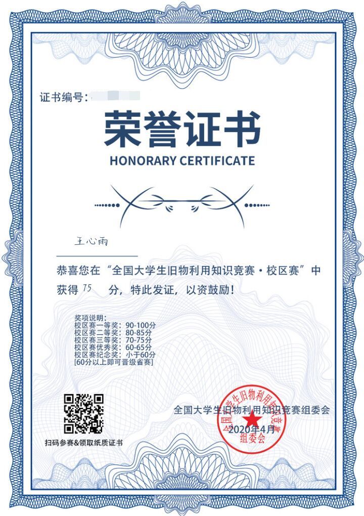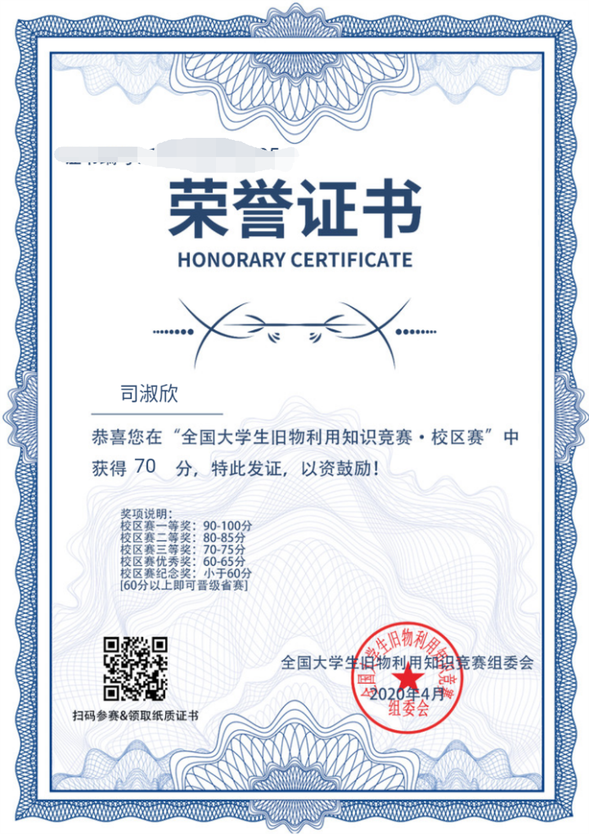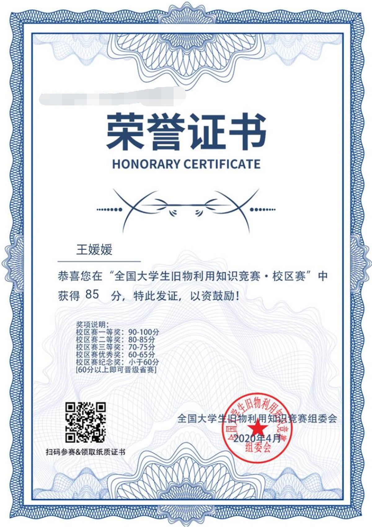 葛戈,2020年第四届全国老员工环保知识竞赛优秀奖